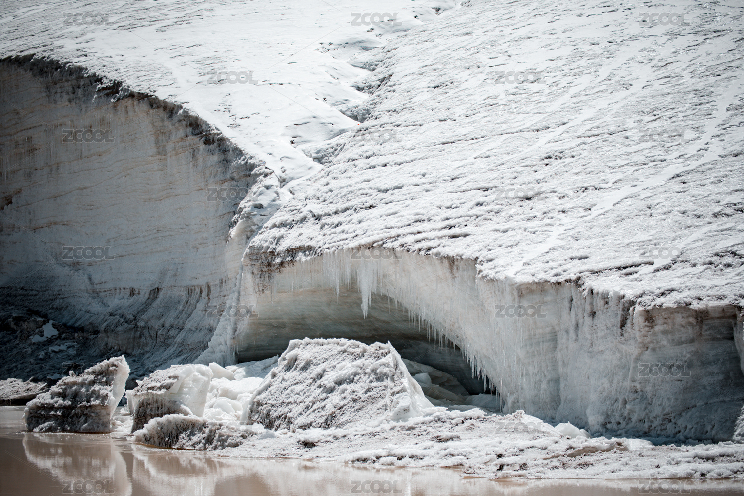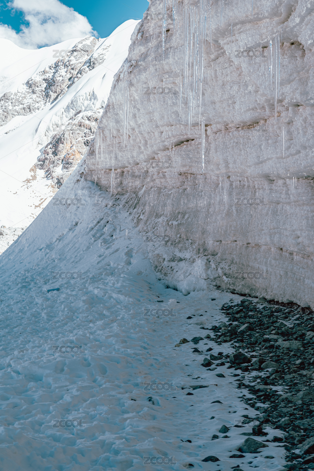 中國(guó)廓瓊崗日冰川的雪山冰川和冰掛