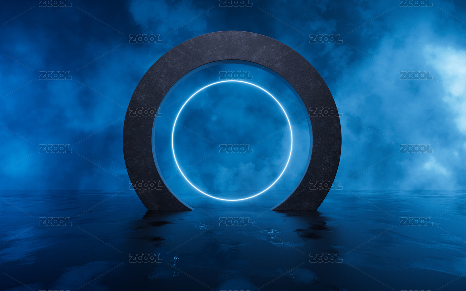 煙霧效果與霓虹發(fā)光線條3D渲染