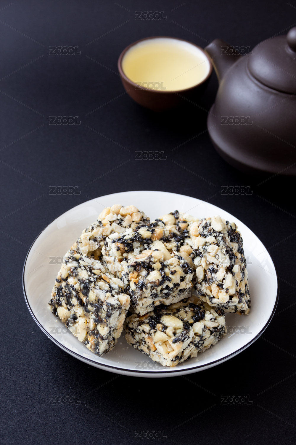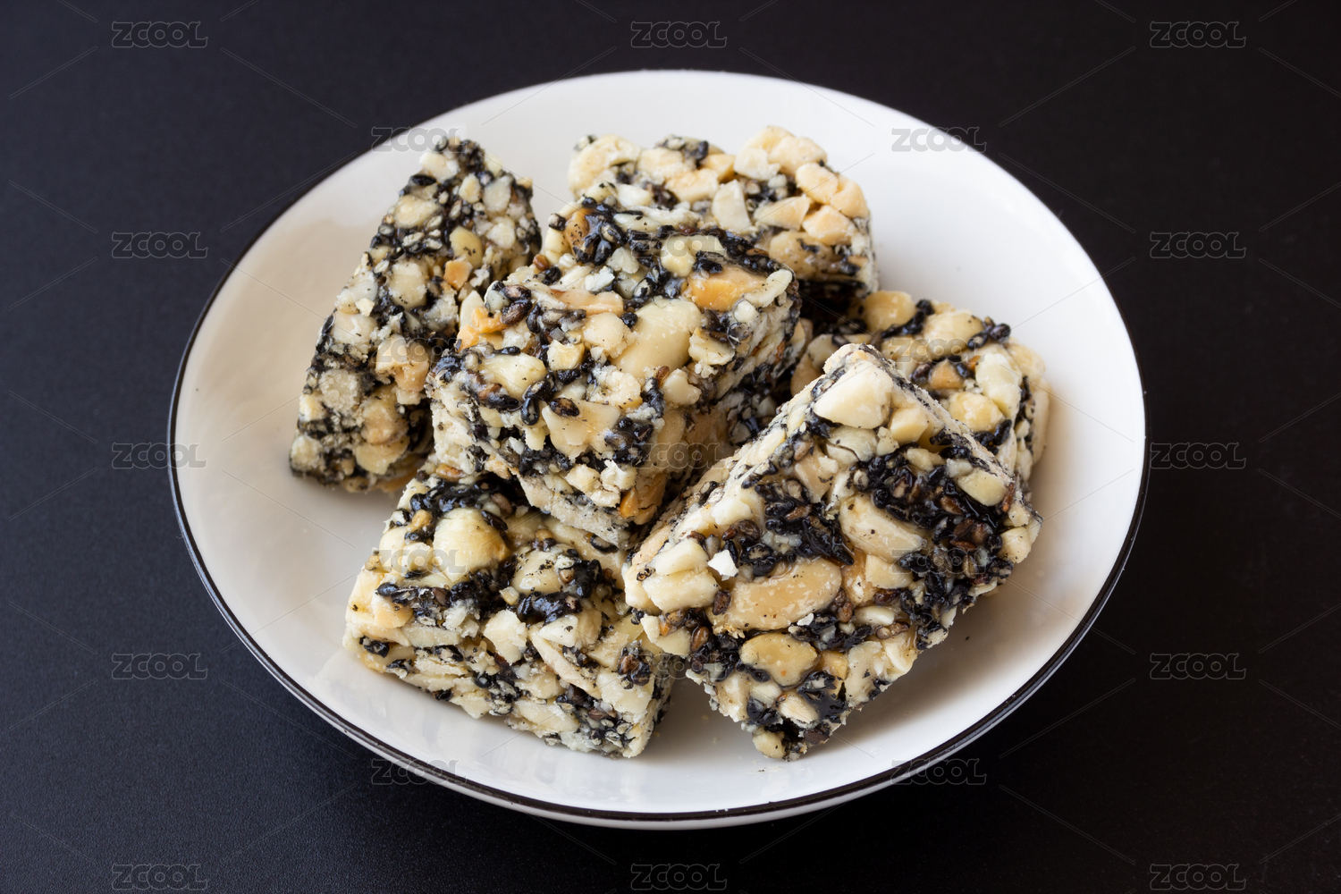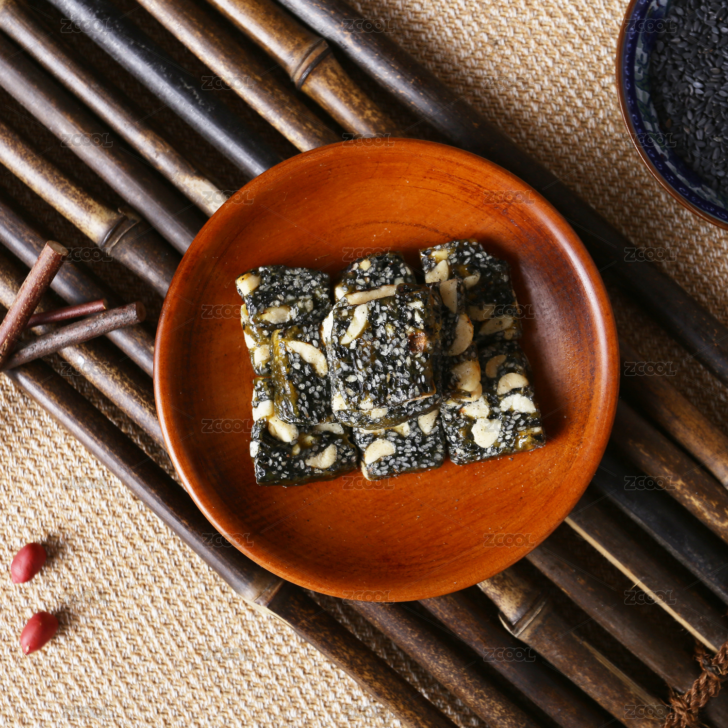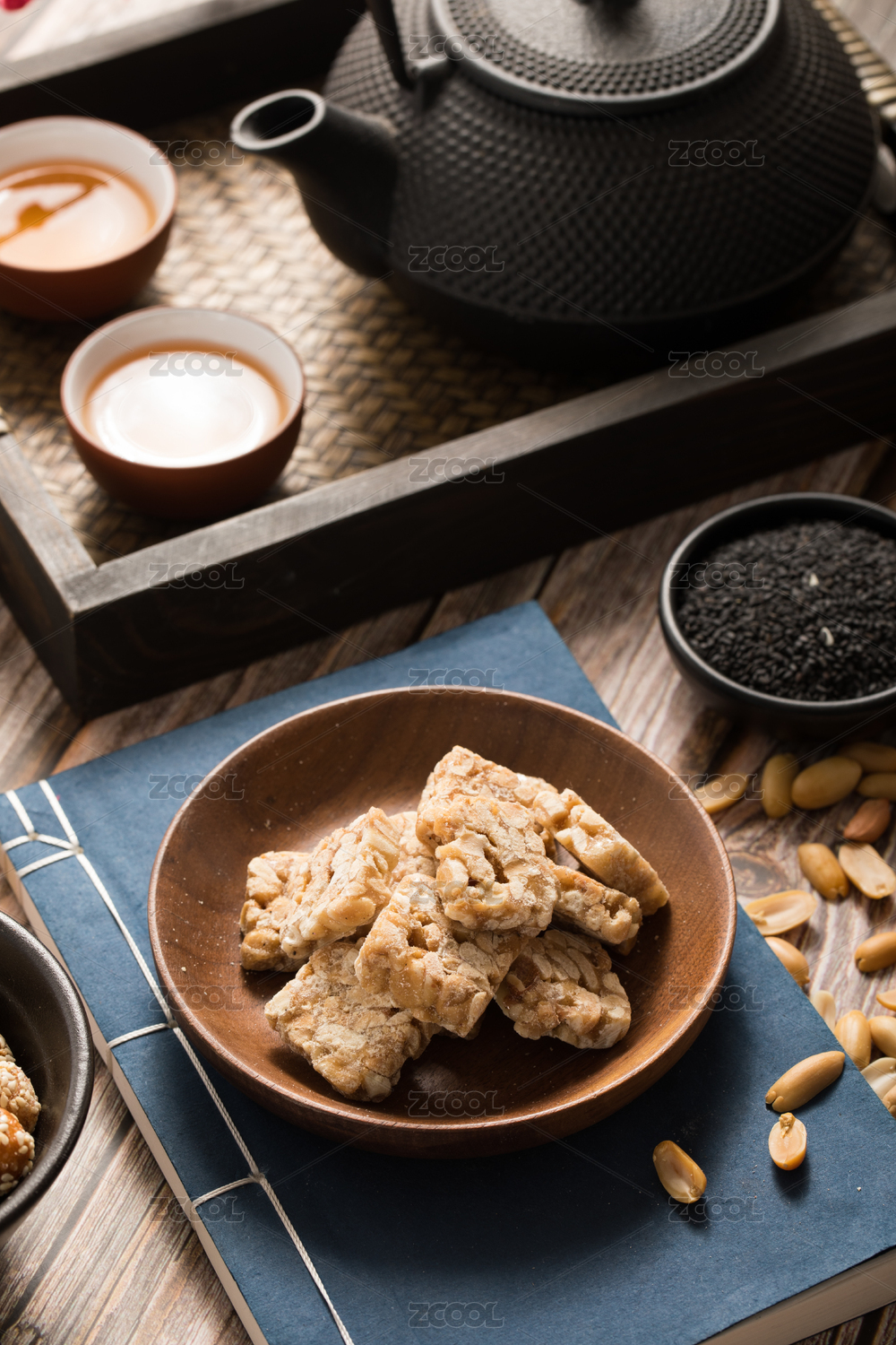 裝在木盤中放在古書上傳統(tǒng)點心花生酥