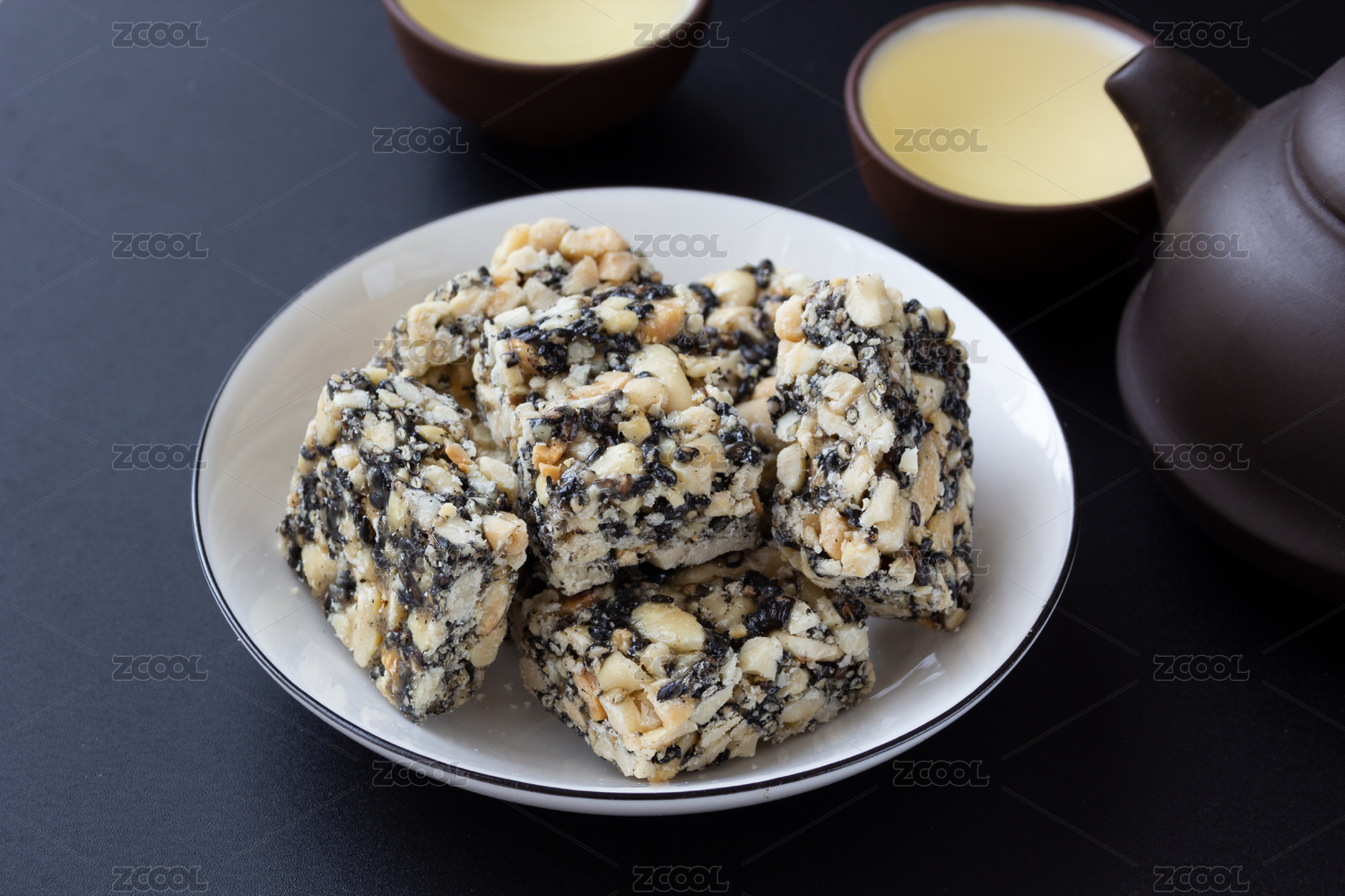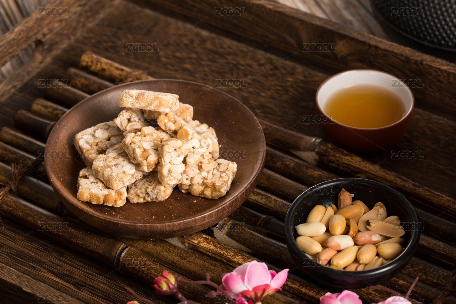 放在木盤中的傳統(tǒng)中式特色點心花生酥