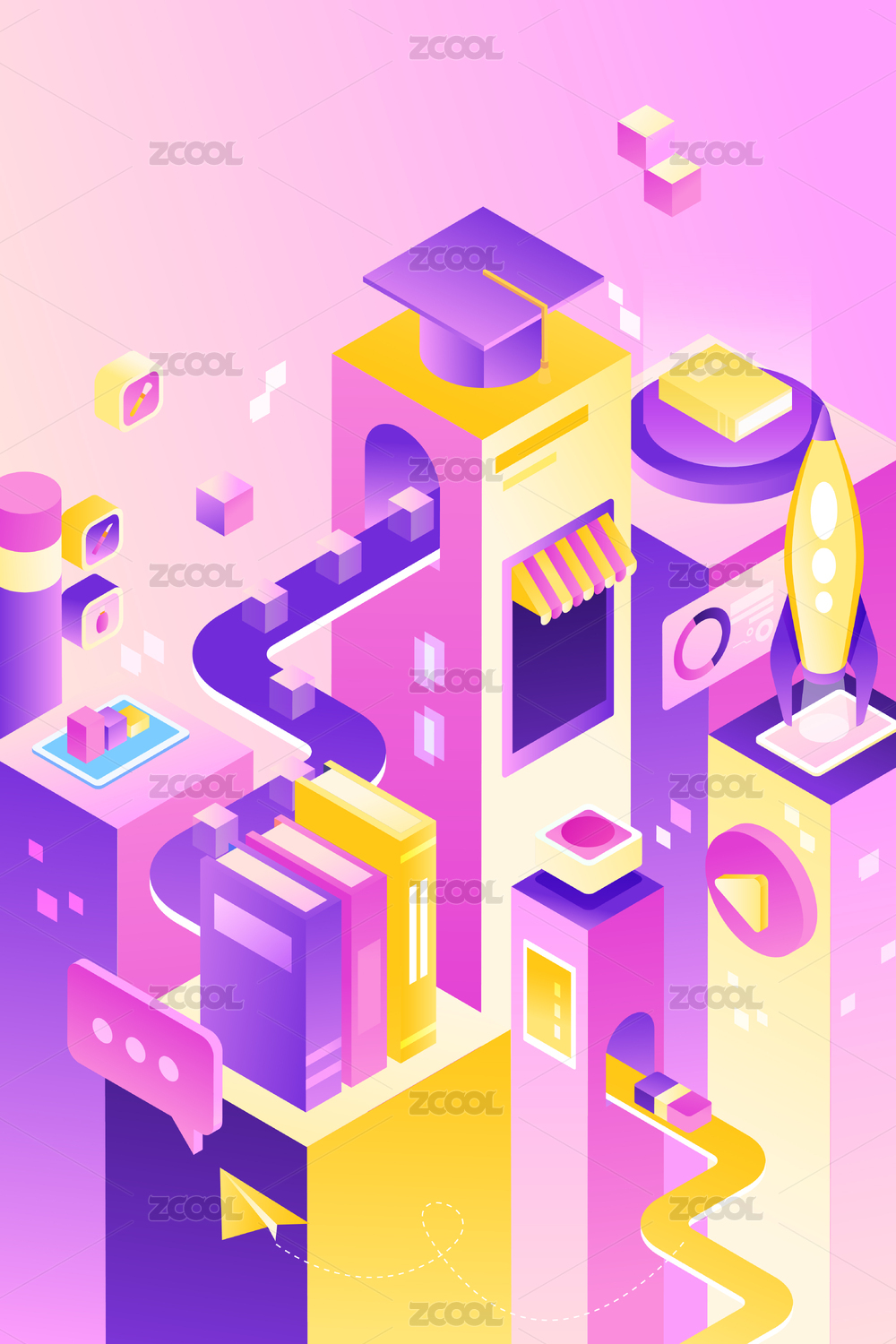 等距網(wǎng)課教育矢量插畫