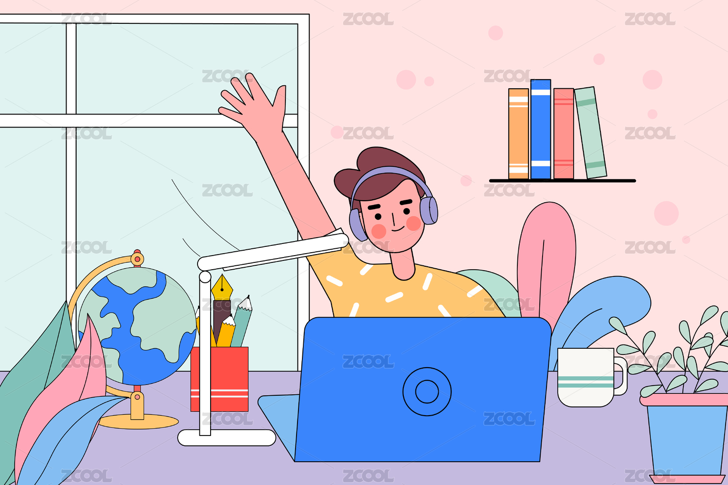 學(xué)生在線上網(wǎng)課插畫