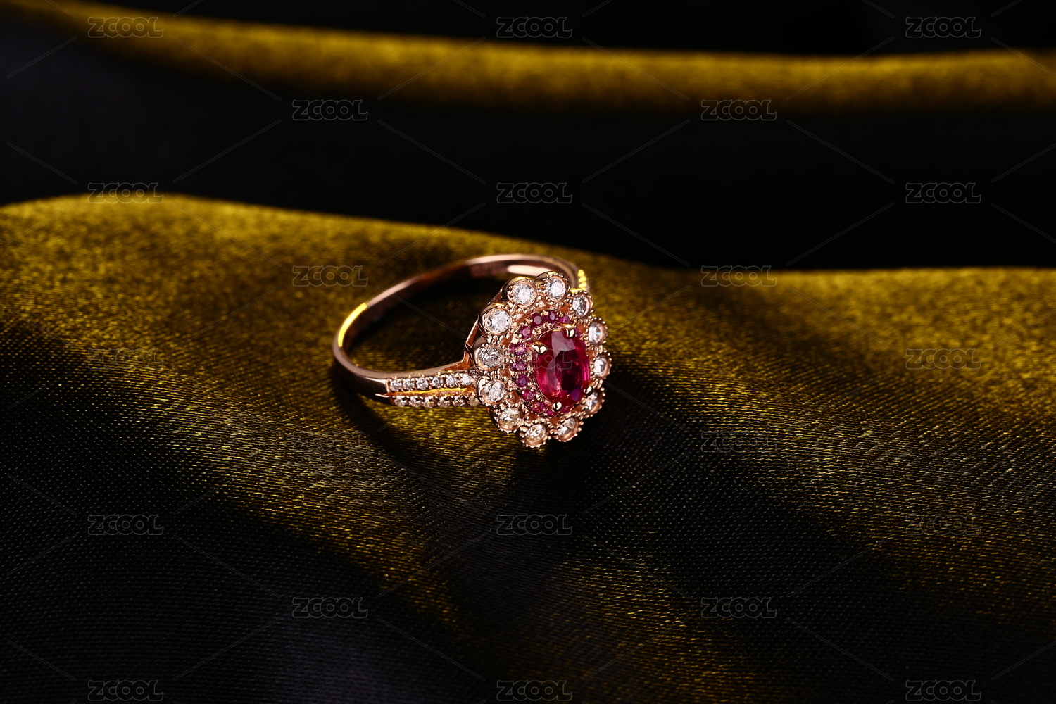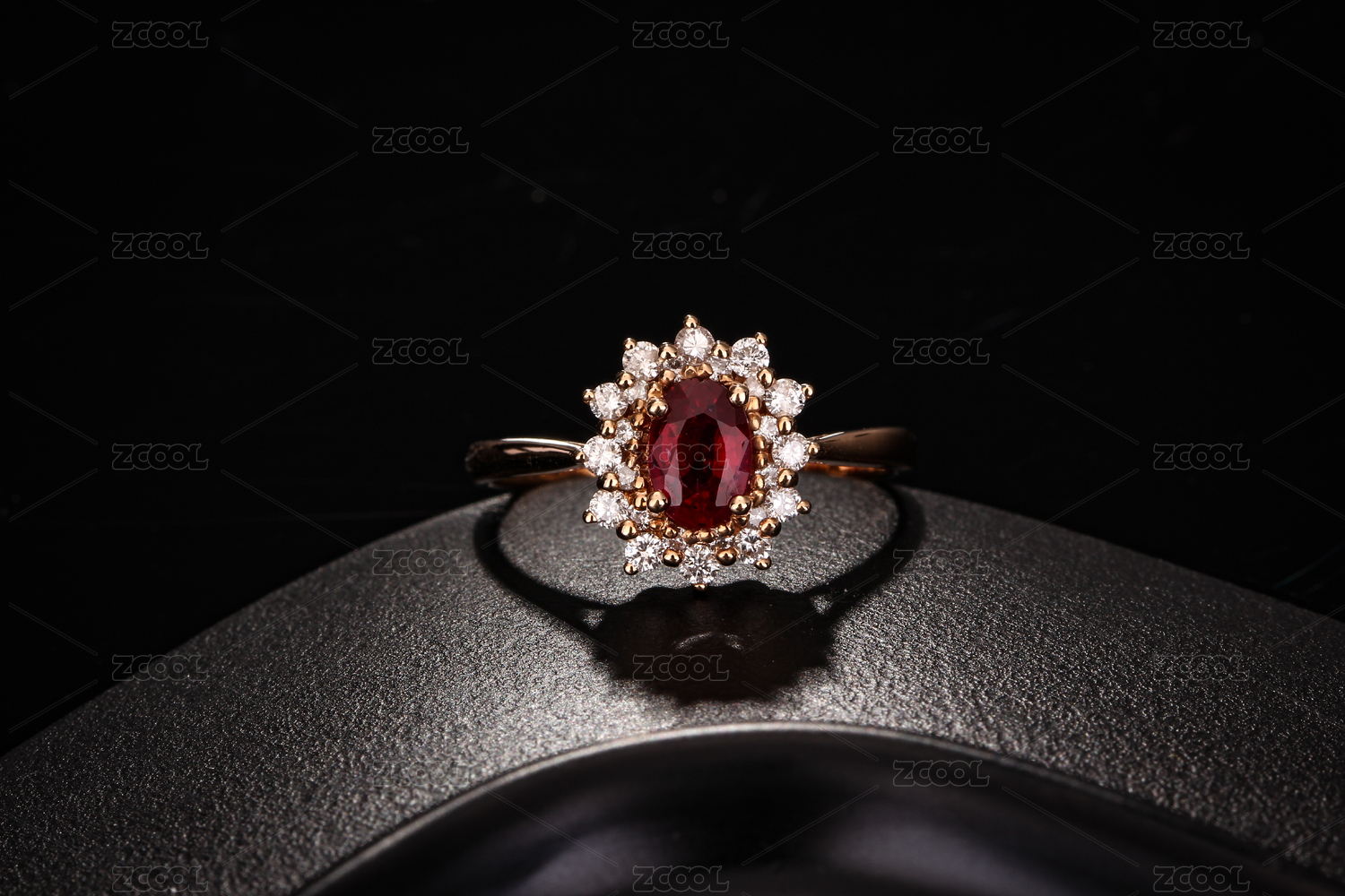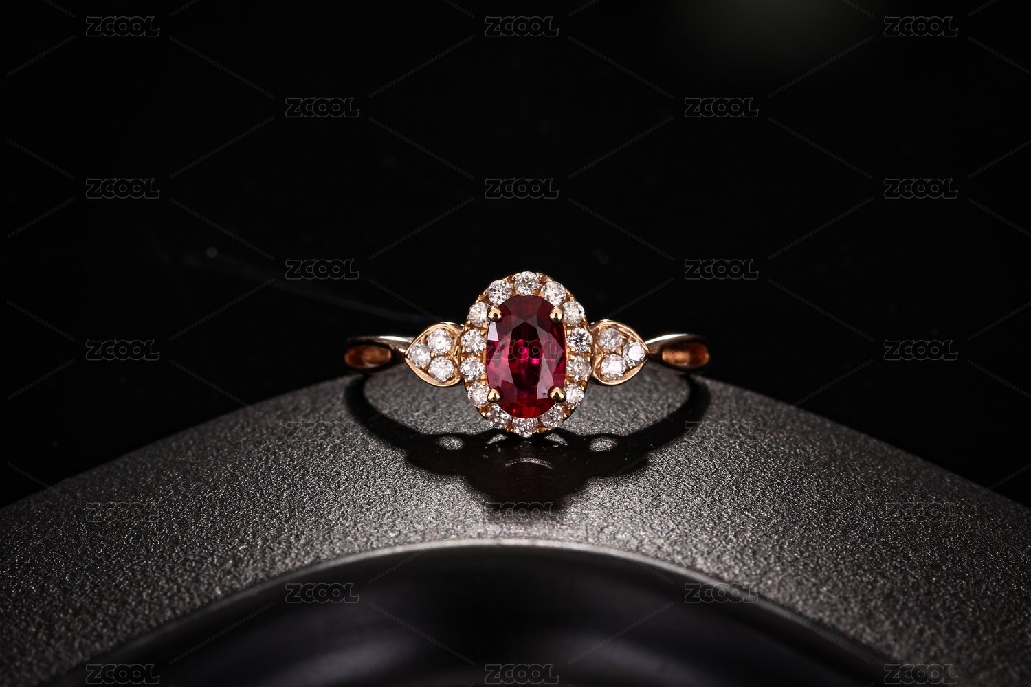 紅寶石鉆戒在深色的環(huán)境中