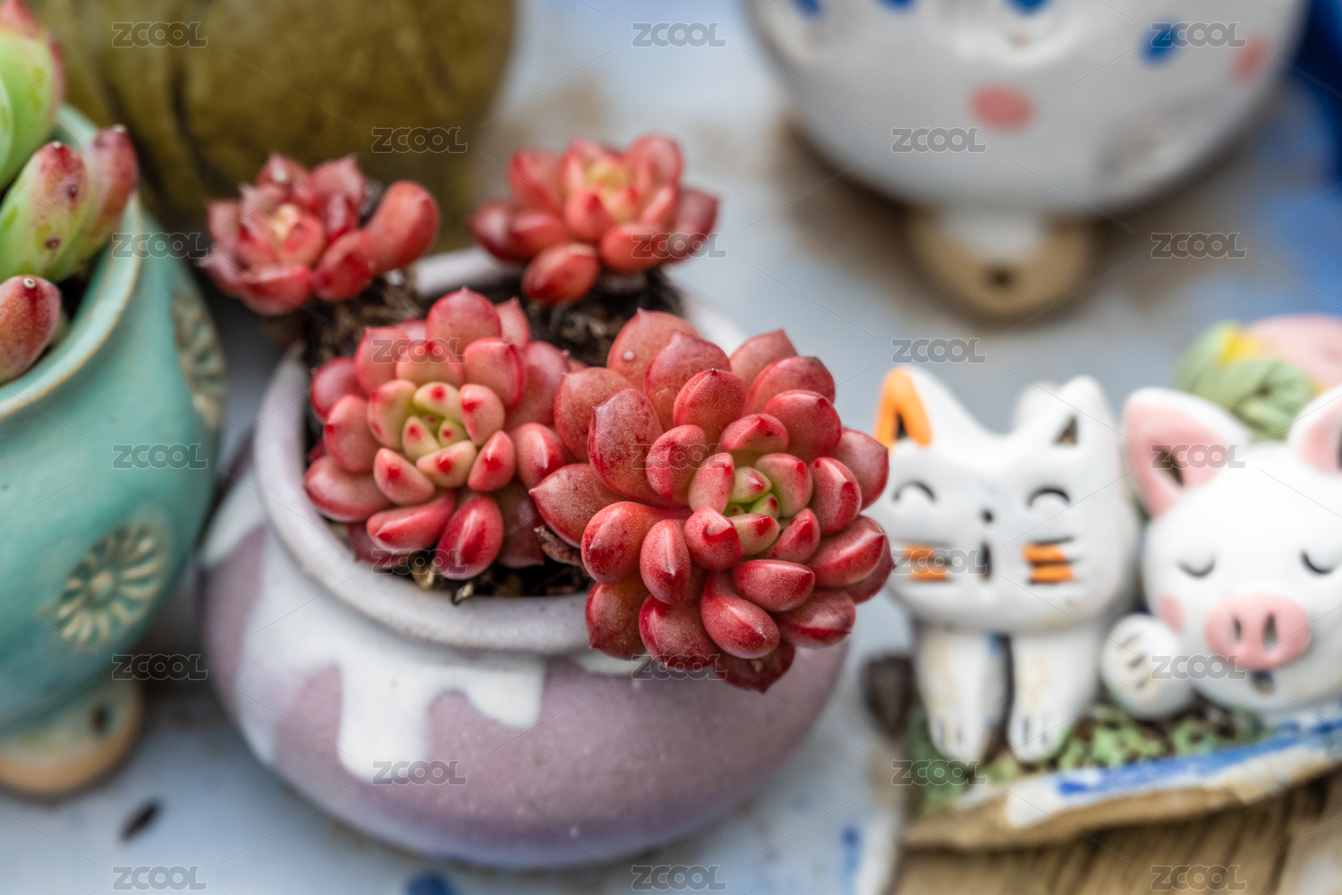多肉植物紅寶石盆栽擺設(shè)