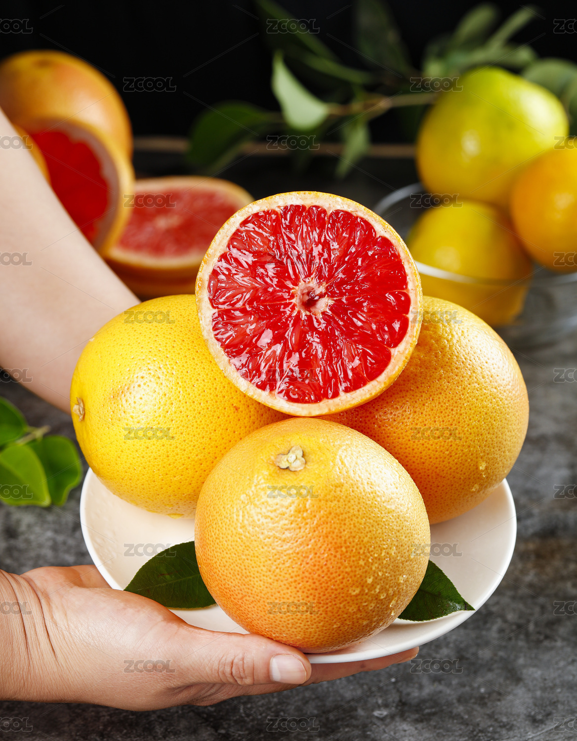 手上端著一盤紅寶石西柚