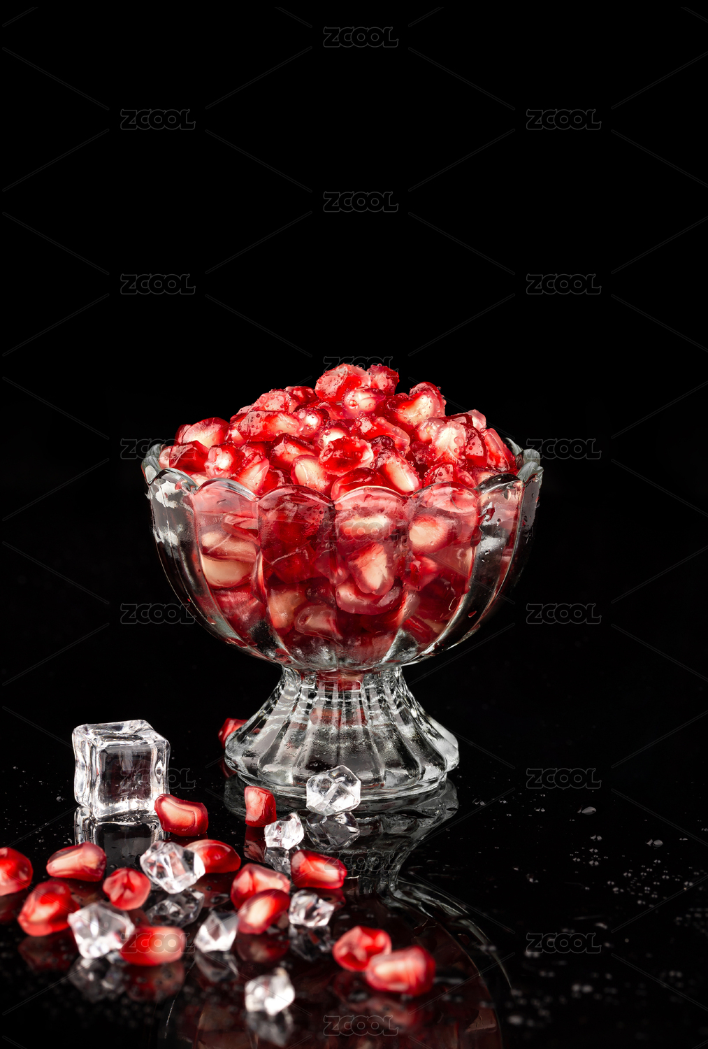 黑底上放著一筐紅寶石石榴