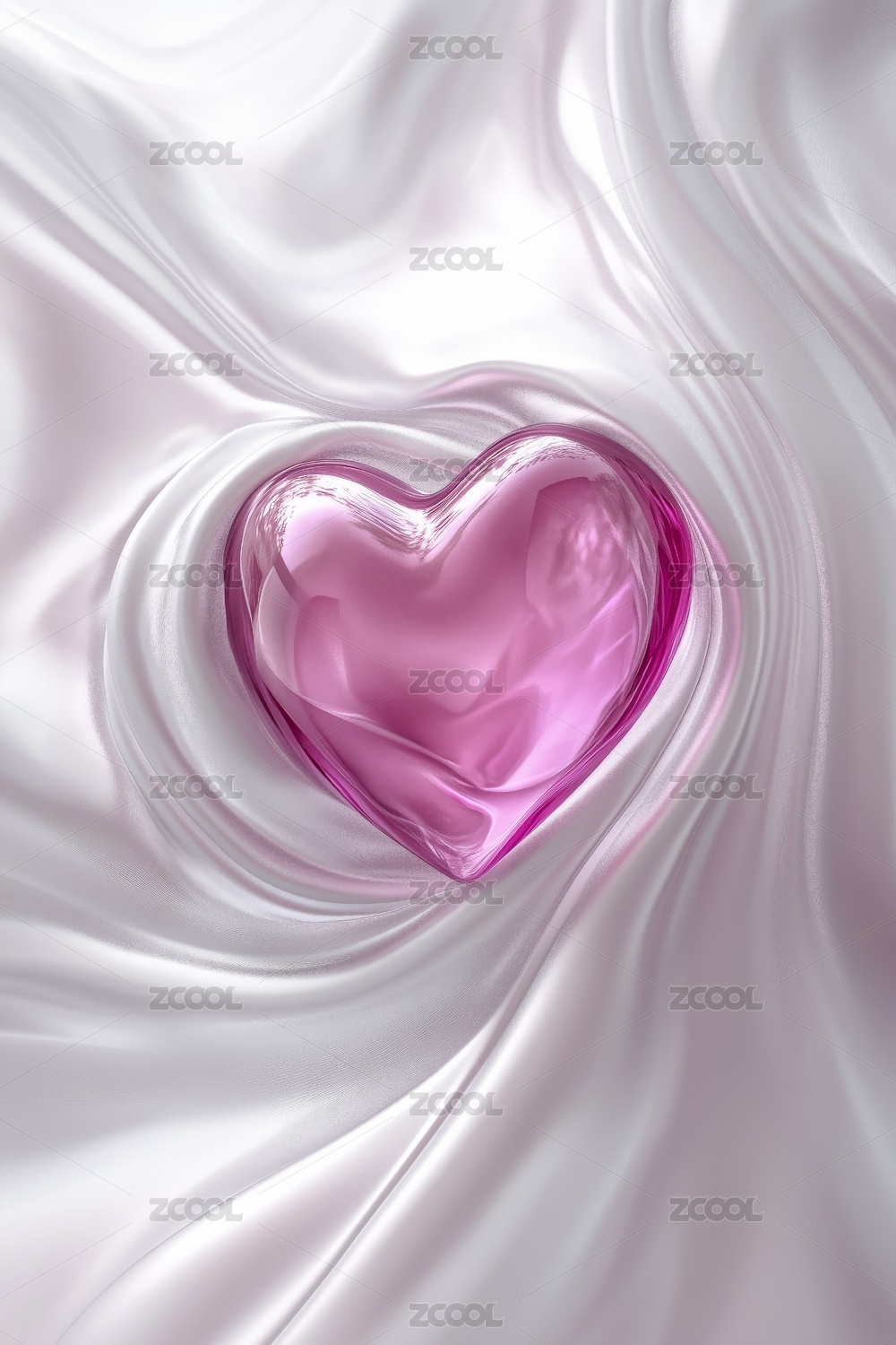 淺色絲綢面料上心型紅寶石首飾3D立體插畫