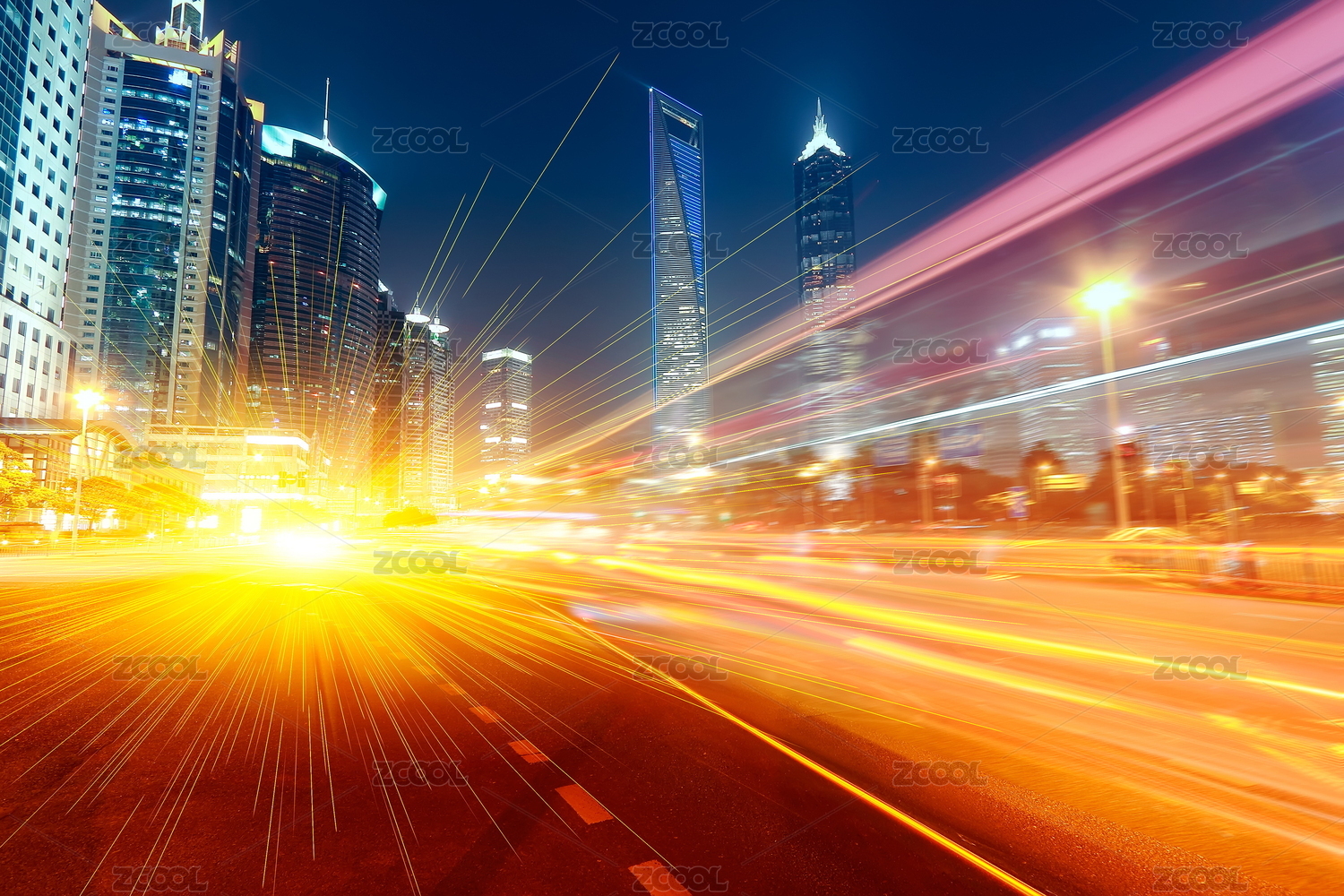 上海城市夜景飛馳的汽車尾燈形成的光的軌跡
