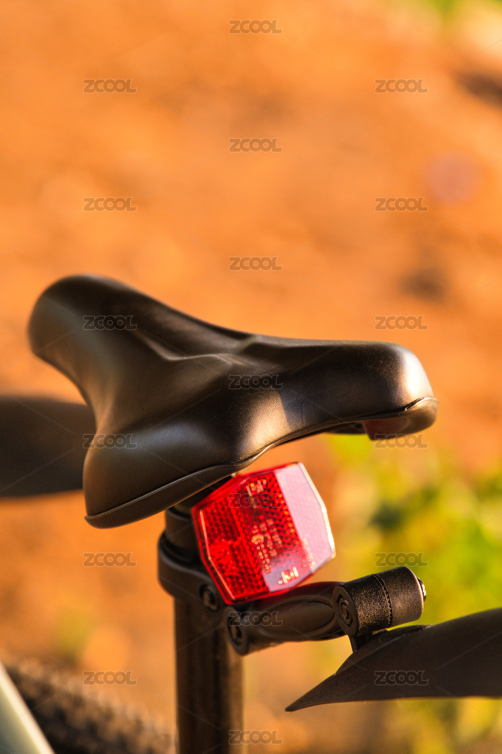 自行車座椅與紅色尾燈的特寫