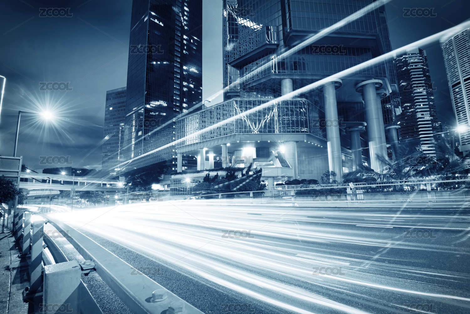 香港夜景,飛馳的汽車尾燈形成的光的軌跡