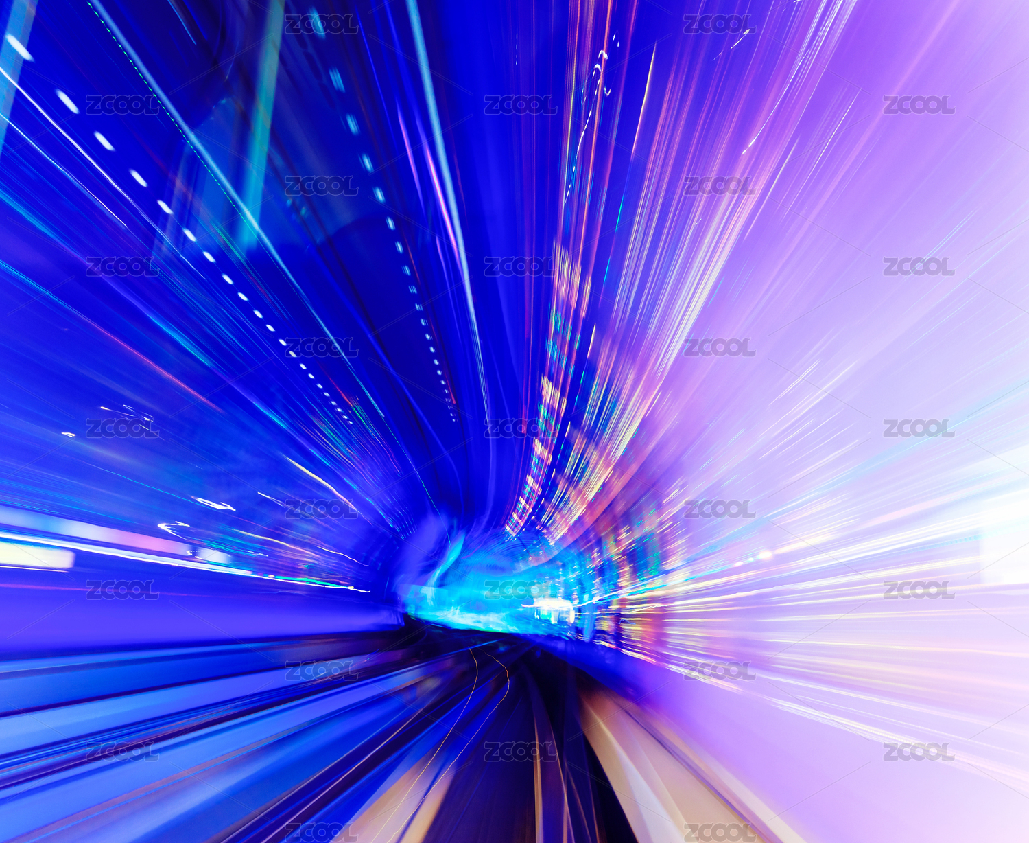 隧道飛馳的汽車尾燈形成的光的軌跡