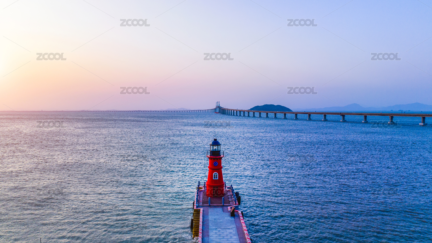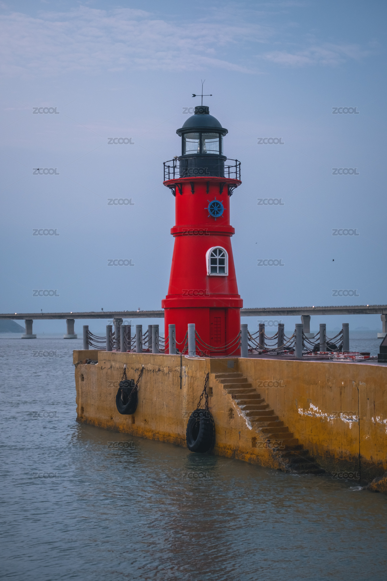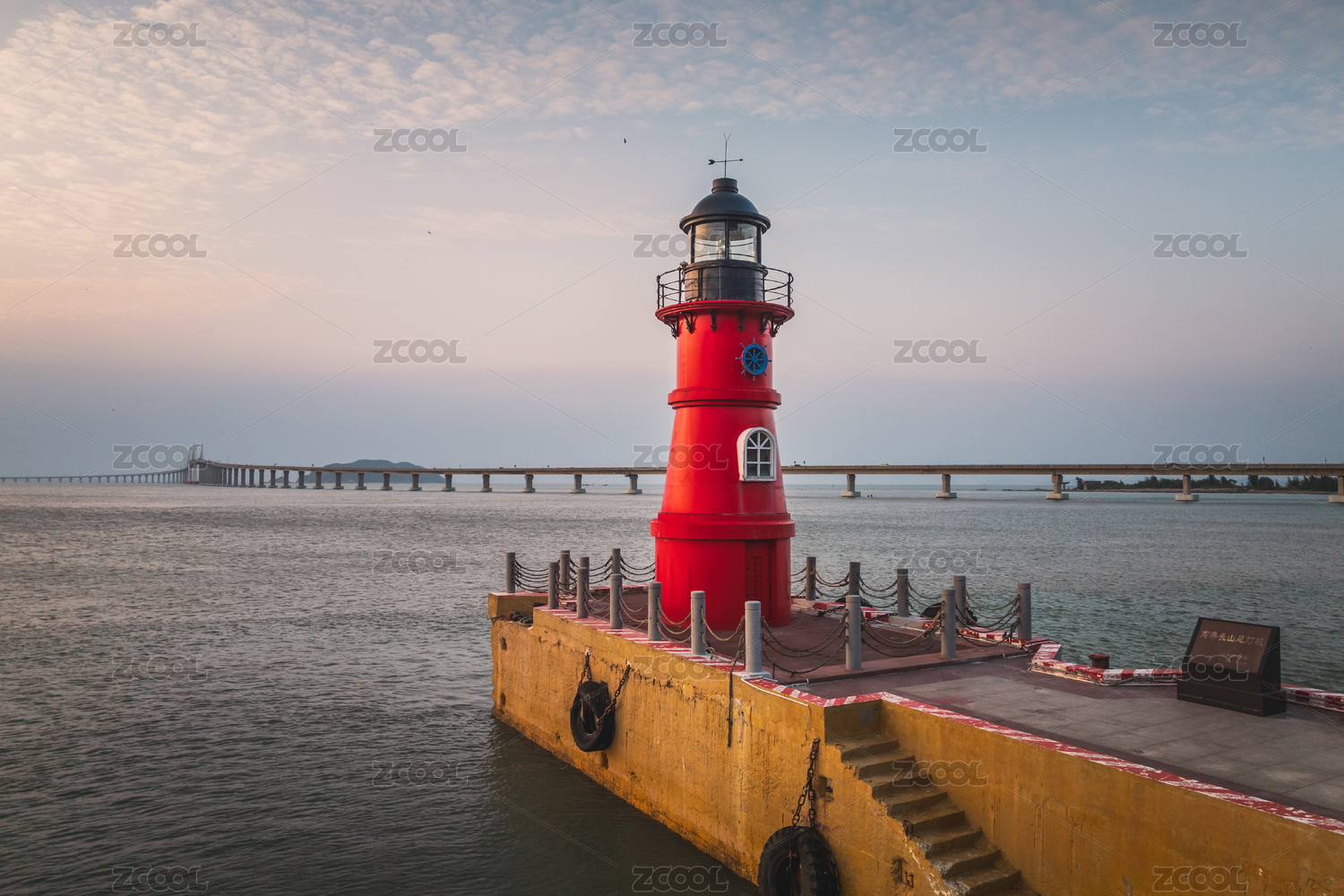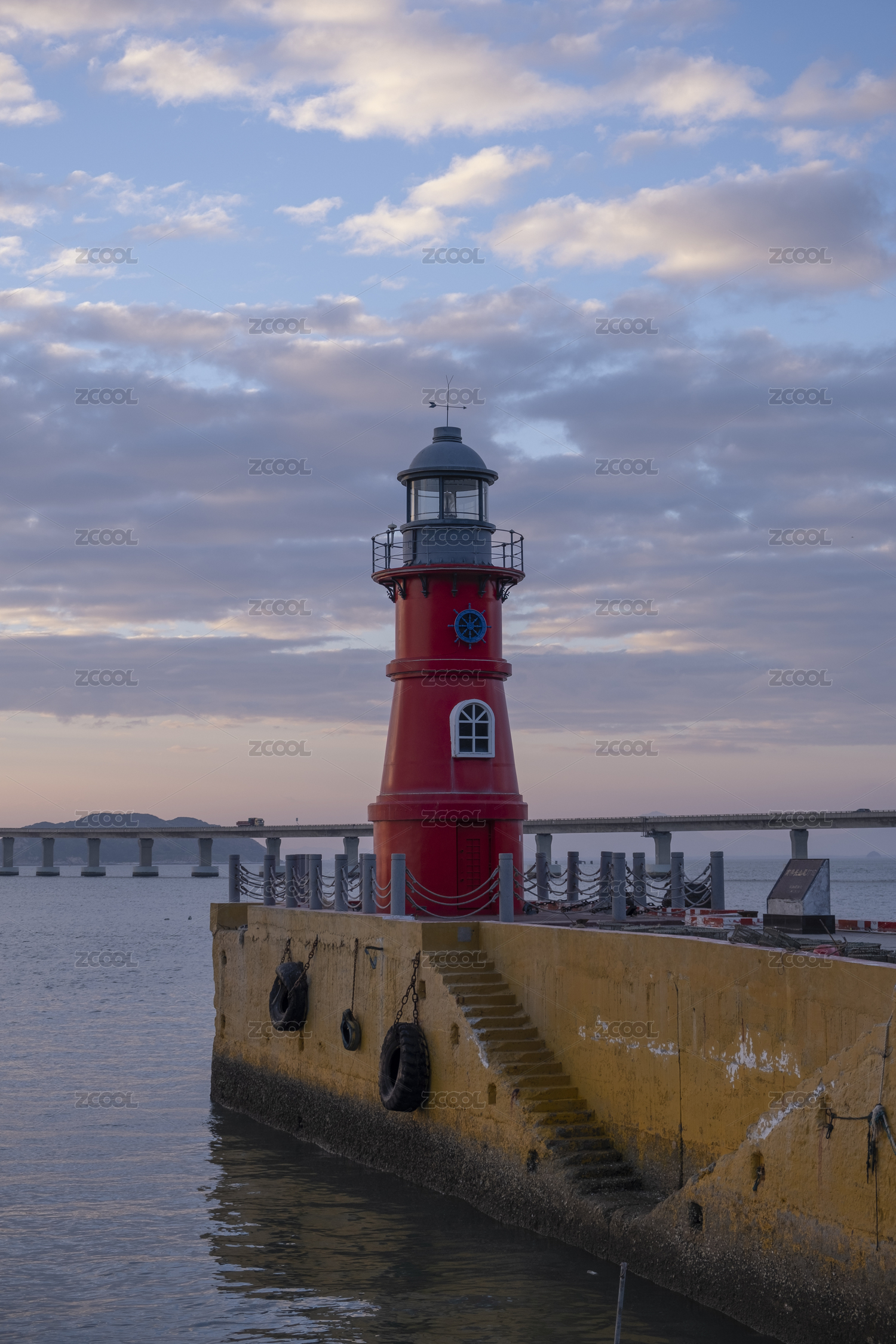 夕陽下的南澳島長山尾燈塔與遠(yuǎn)處的南澳大橋