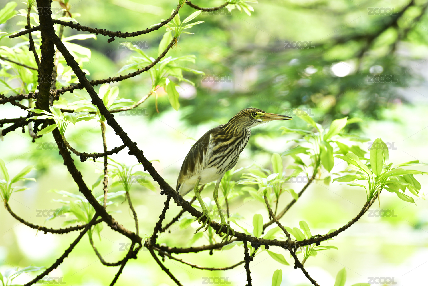 中國廣東深圳洪湖公園夏天停樹枝上的池鷺