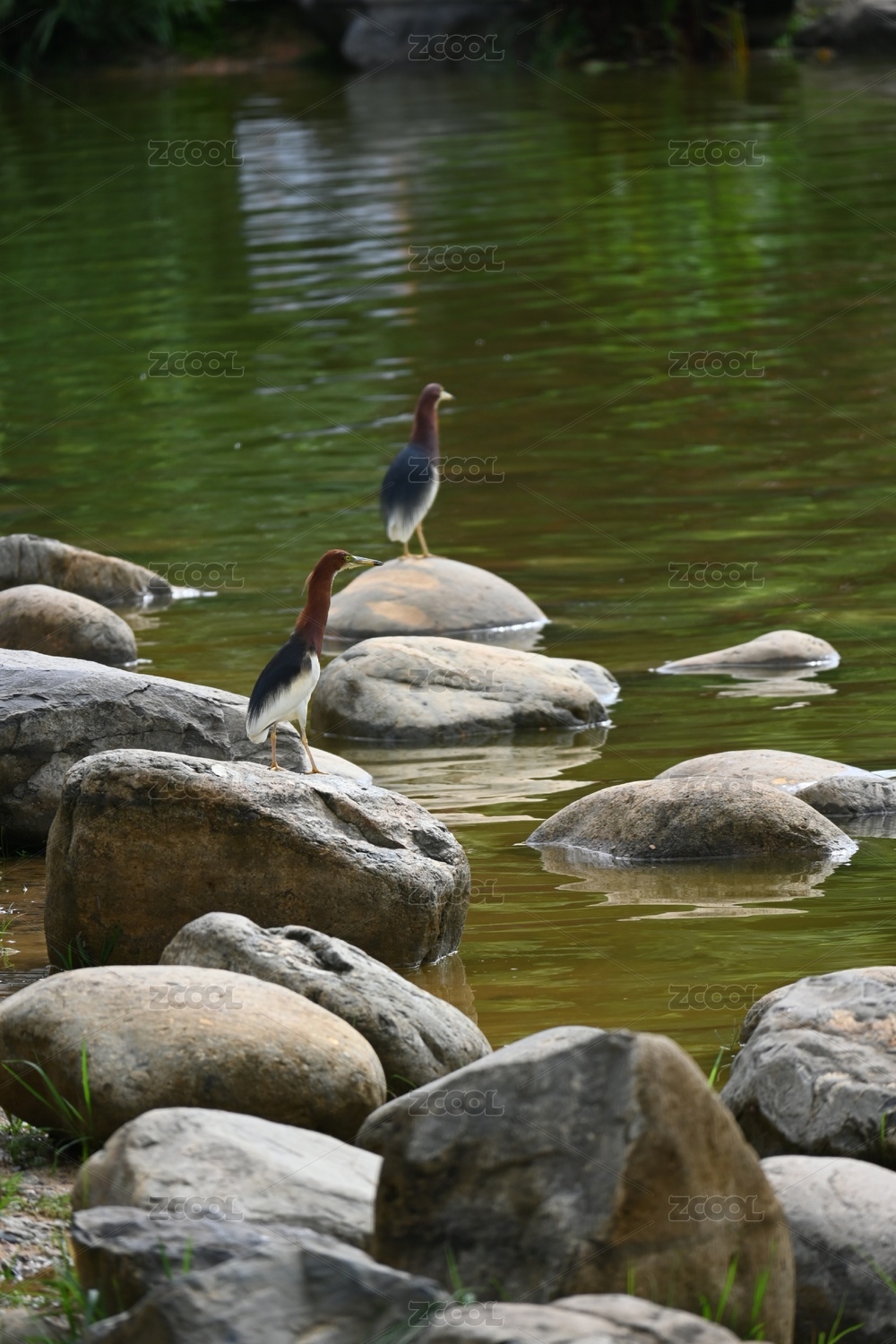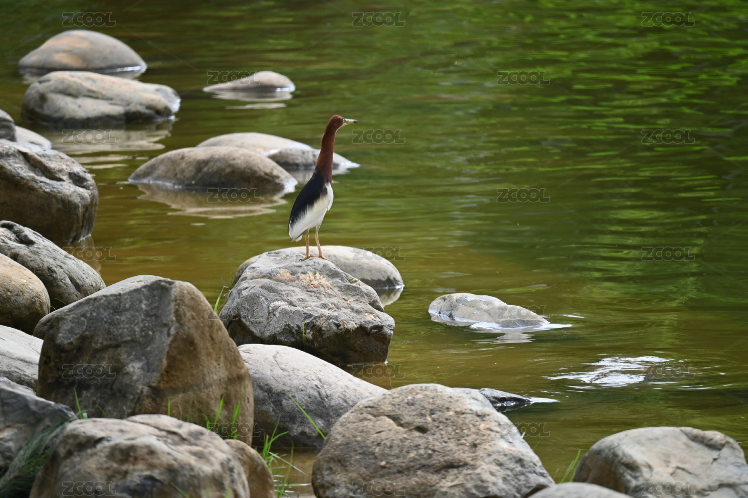站立在湖邊石頭上的池鷺