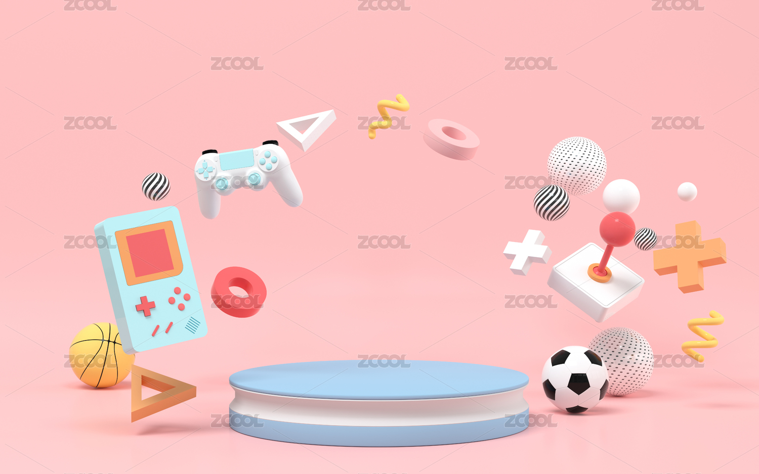 豐富多彩的休閑娛樂玩具與展示臺 3D渲染