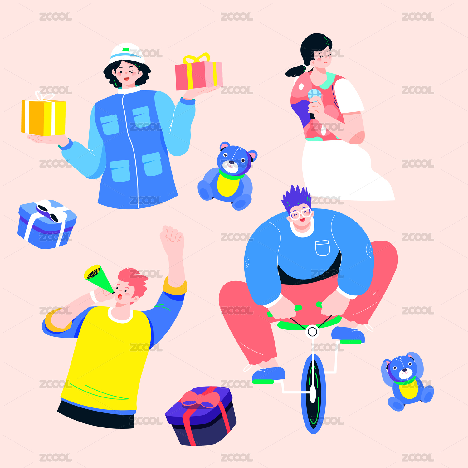 彩色插畫年輕人潮流娛樂辦公生活