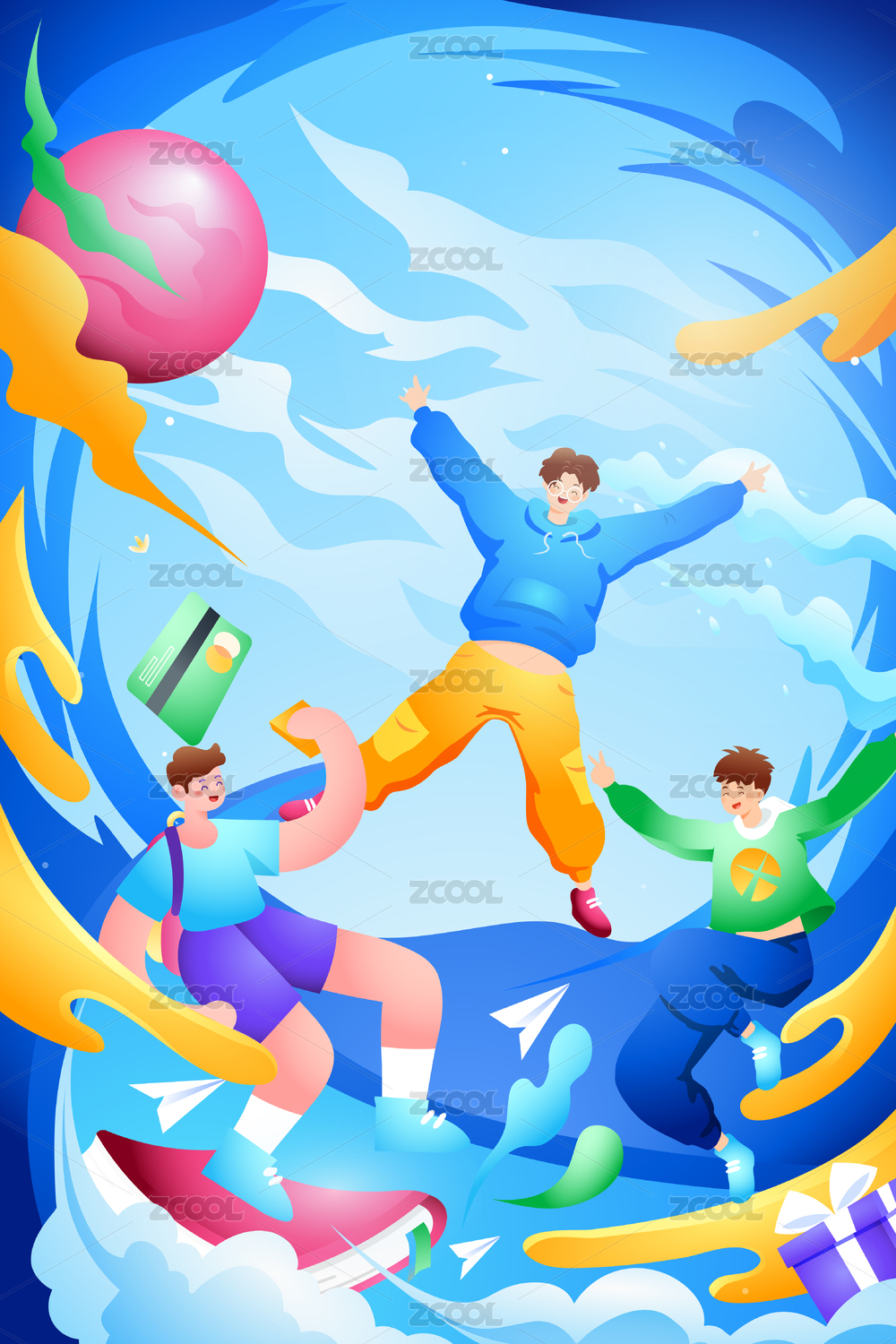 學(xué)生電商娛樂矢量插畫