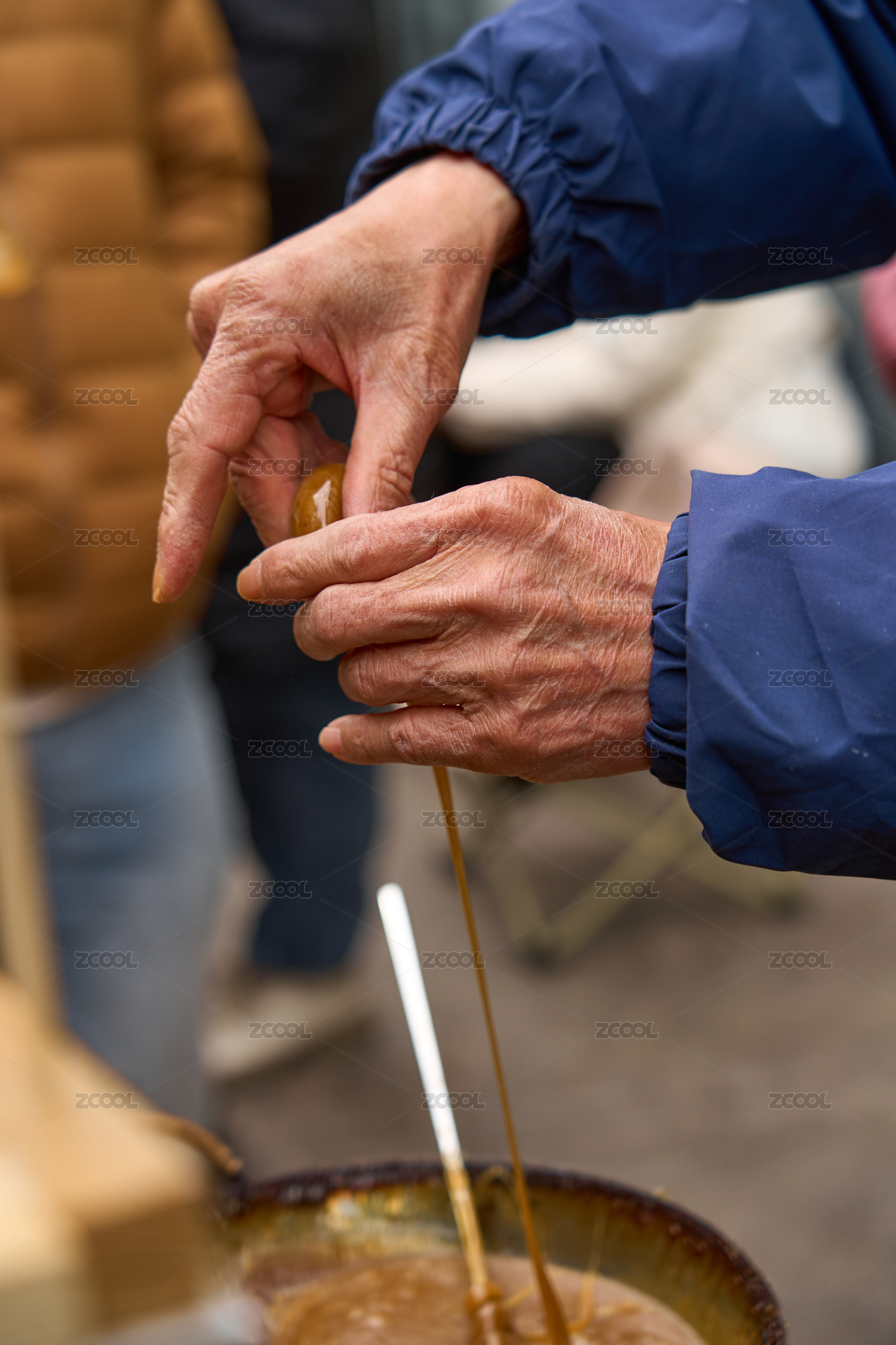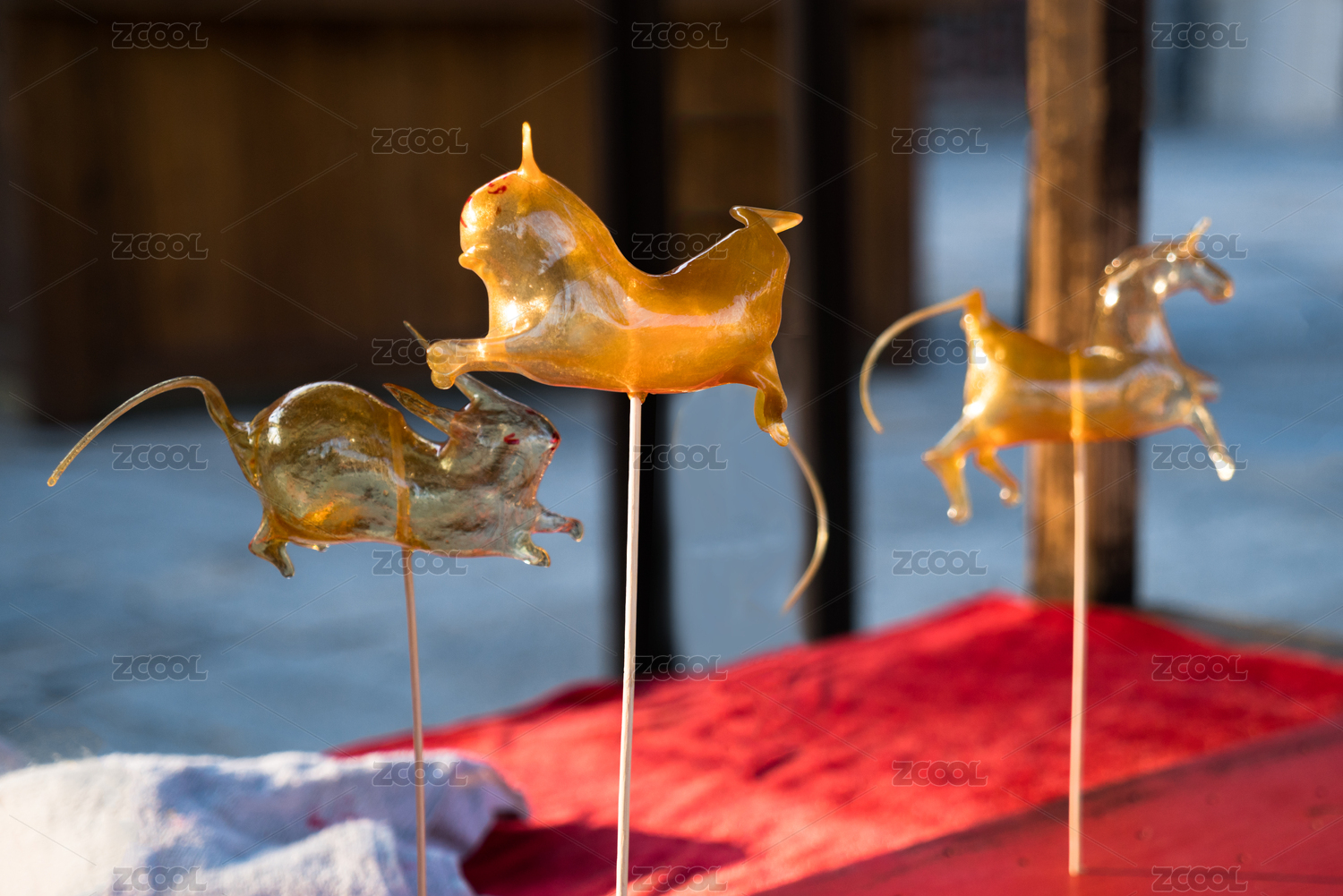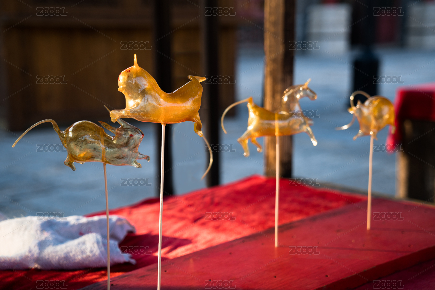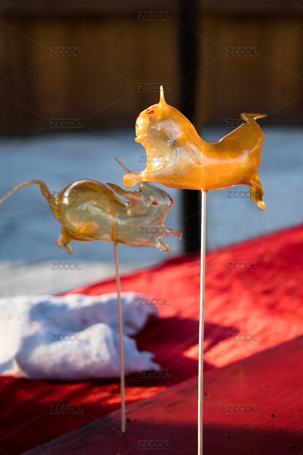 北京冬季春節(jié)過年廟會的傳統(tǒng)手藝小吃吹糖人