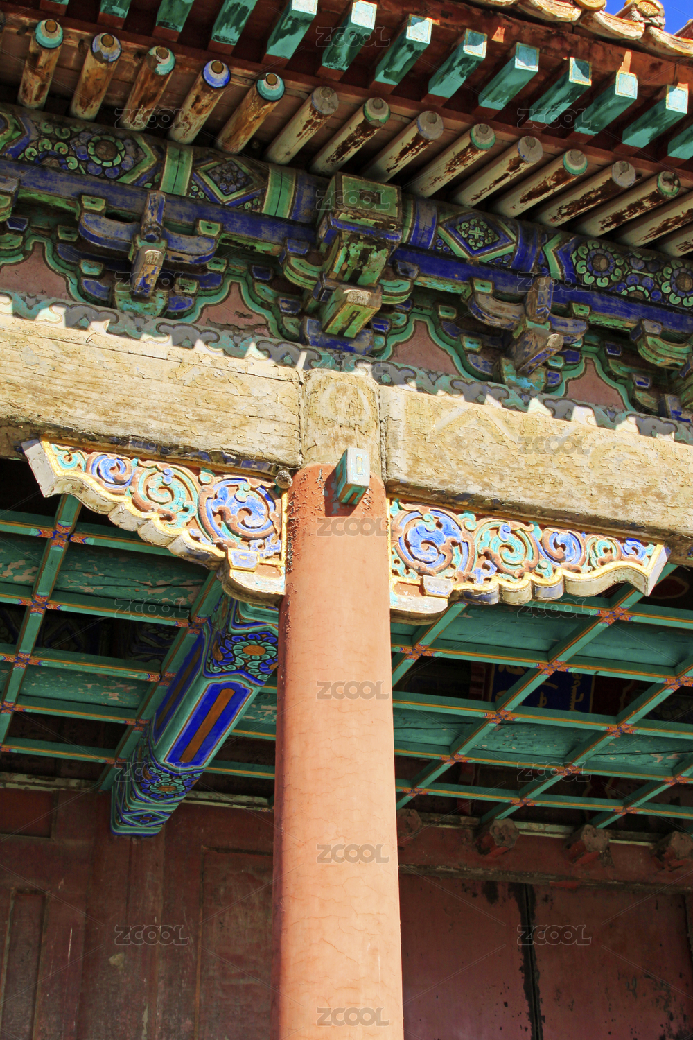 傳統(tǒng)建筑彩繪柱與紅燈籠