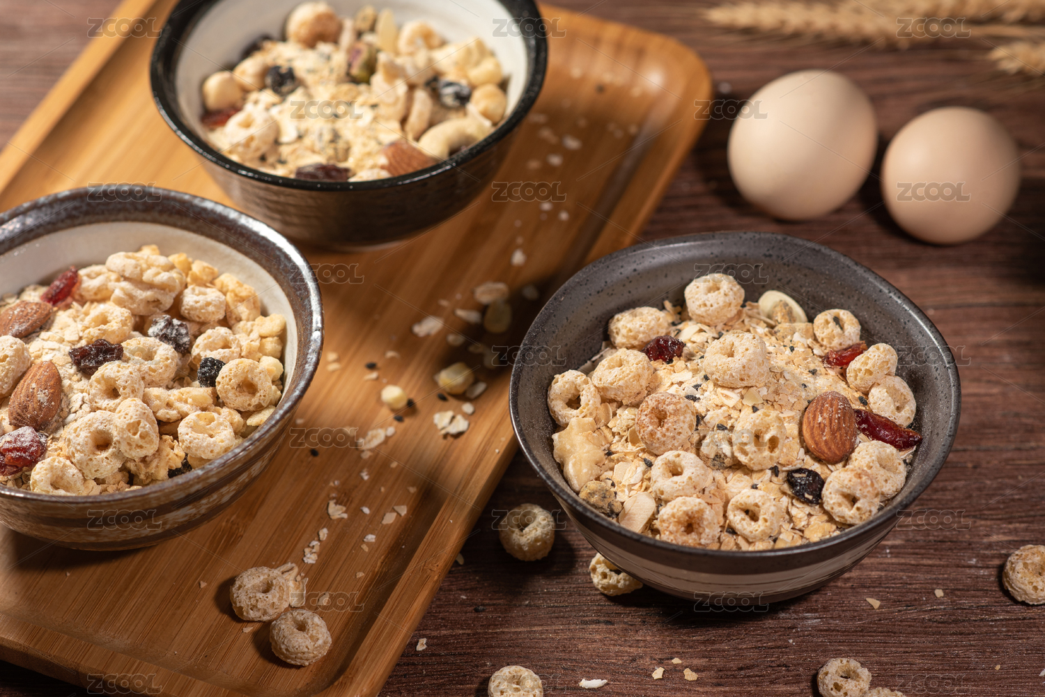紅褐色木板桌面上的營(yíng)養(yǎng)早餐