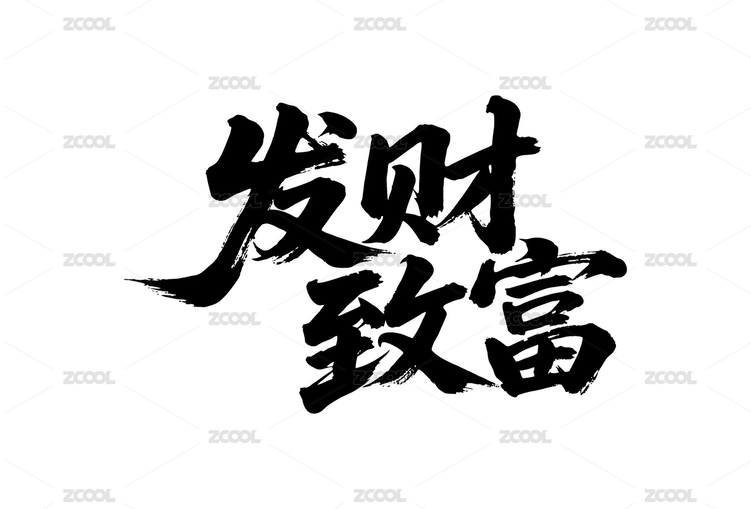 發(fā)財致富-手寫毛筆書法字的矢量圖