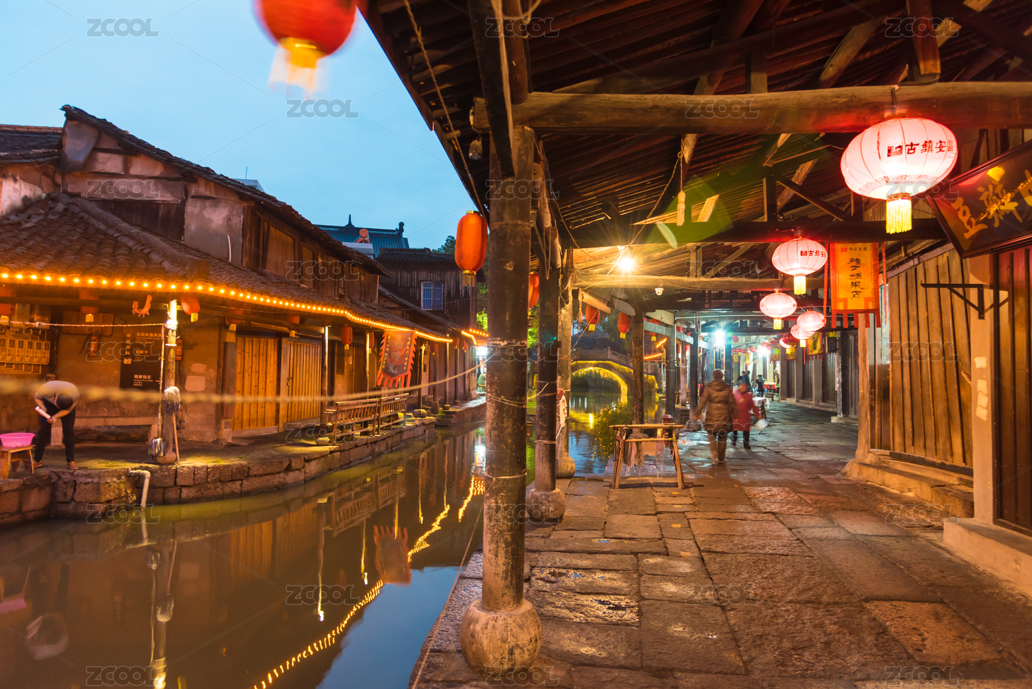 中國浙江省紹興市安昌古鎮(zhèn)夜景風(fēng)光