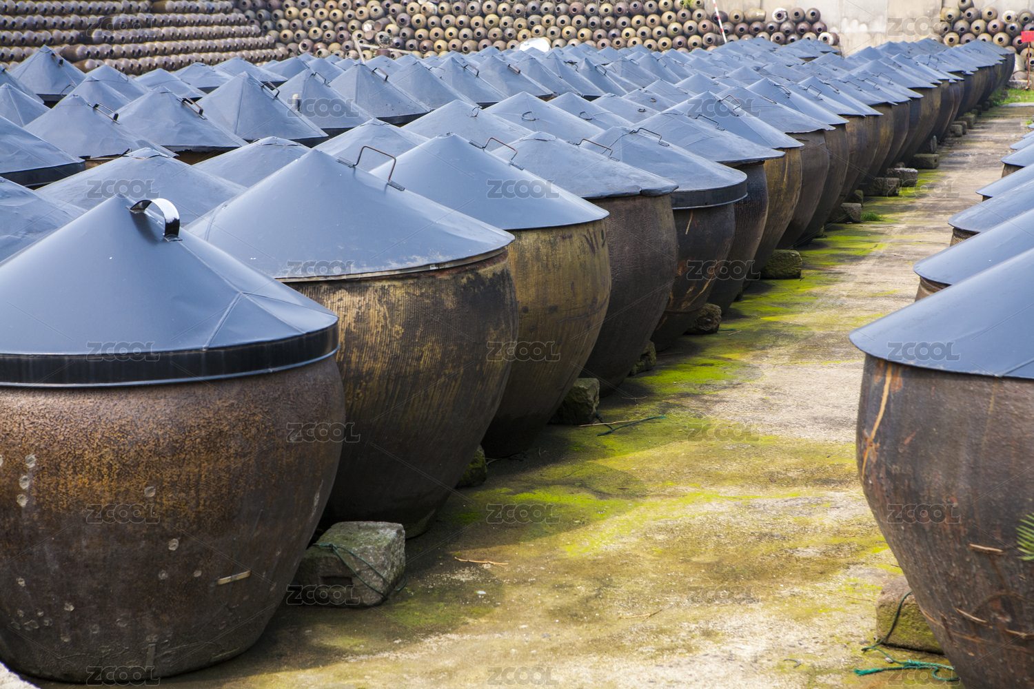 浙江省紹興市安昌古鎮(zhèn)的醬油廠晾曬醬油的醬缸