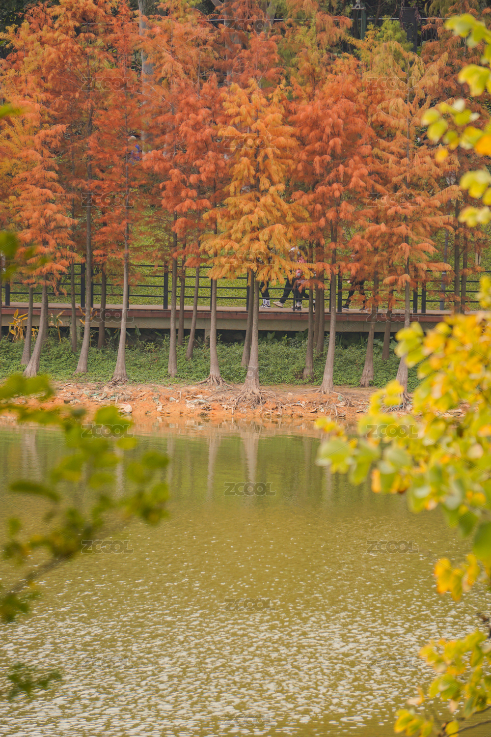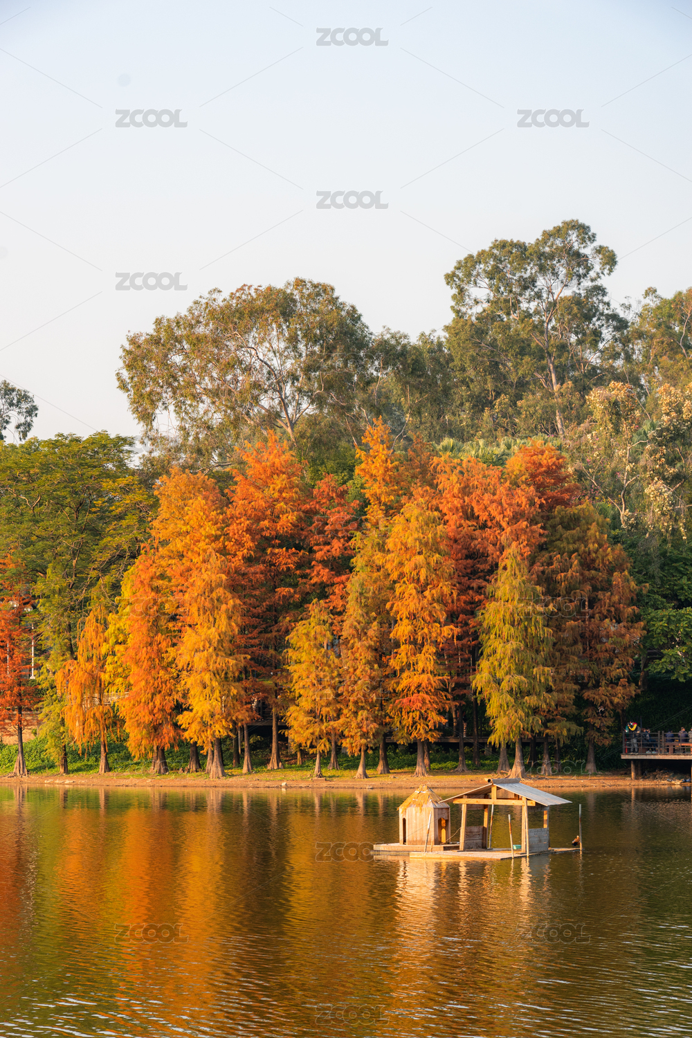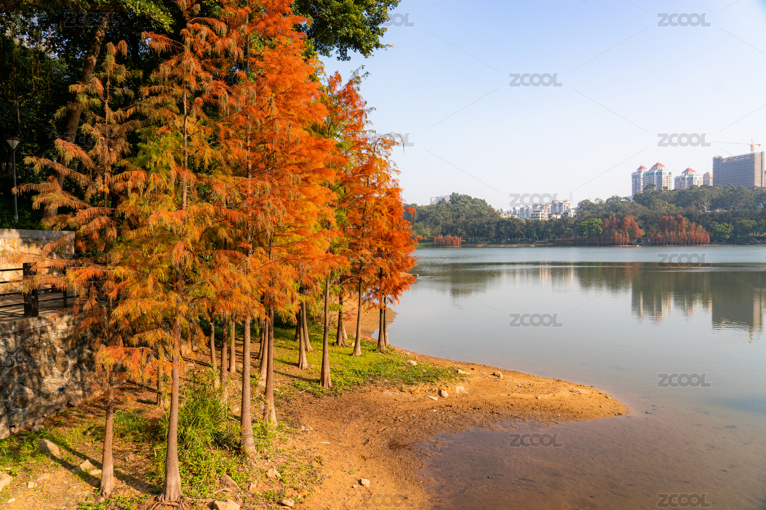 日落時(shí)分,廣州麓湖公園晚秋景色