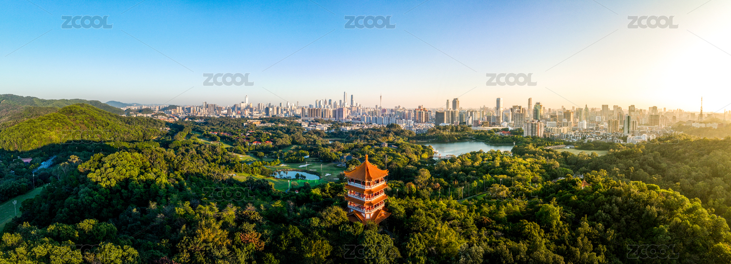 中國(guó)廣東省廣州市麓湖公園遠(yuǎn)眺城區(qū)