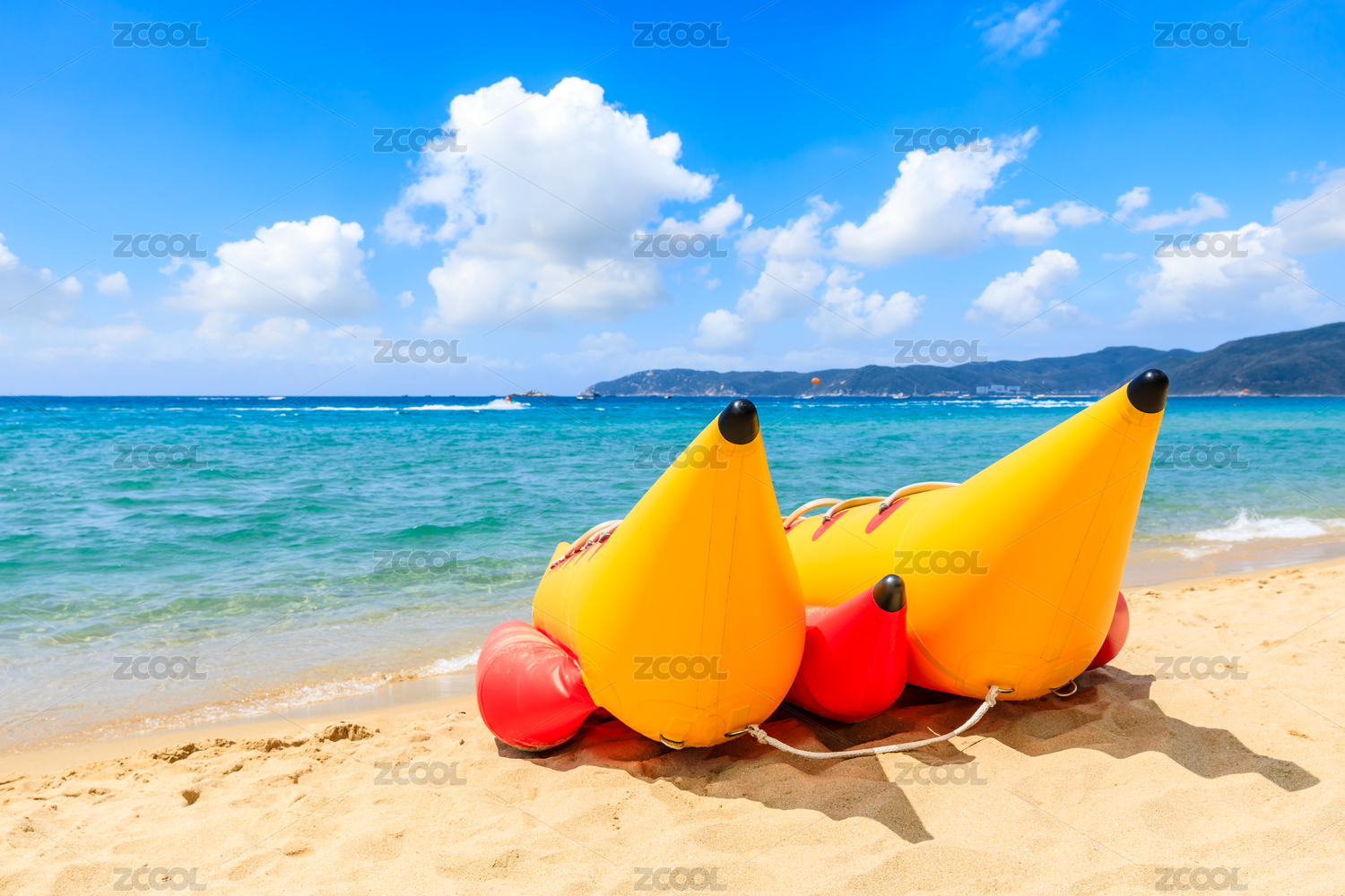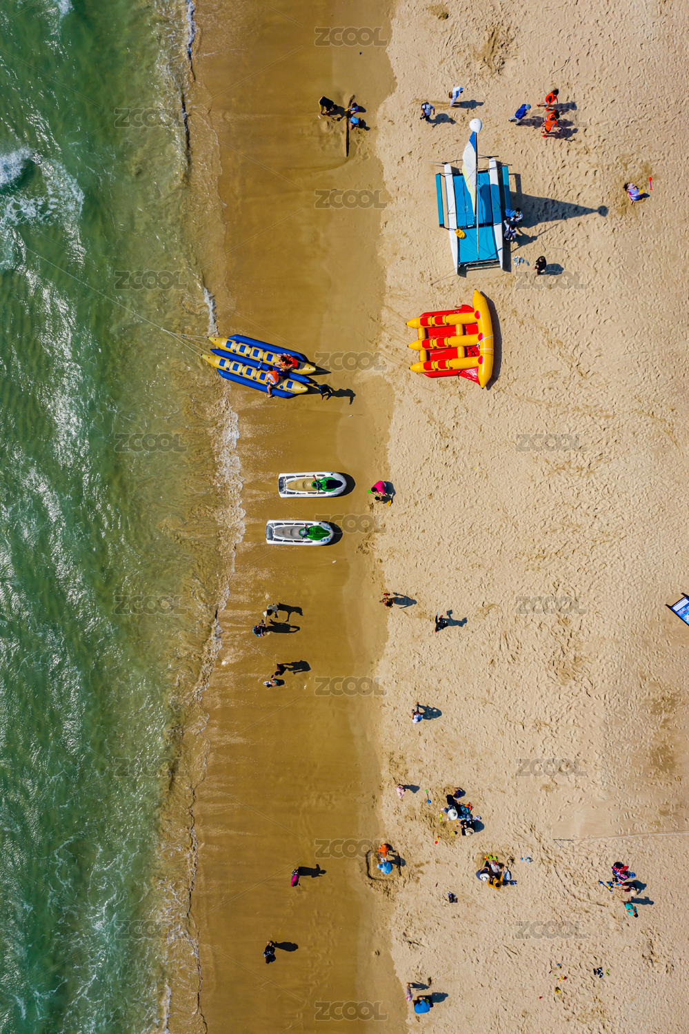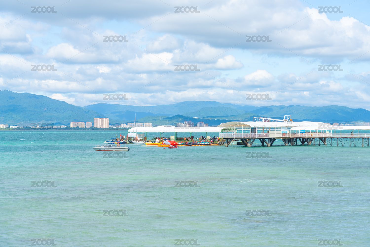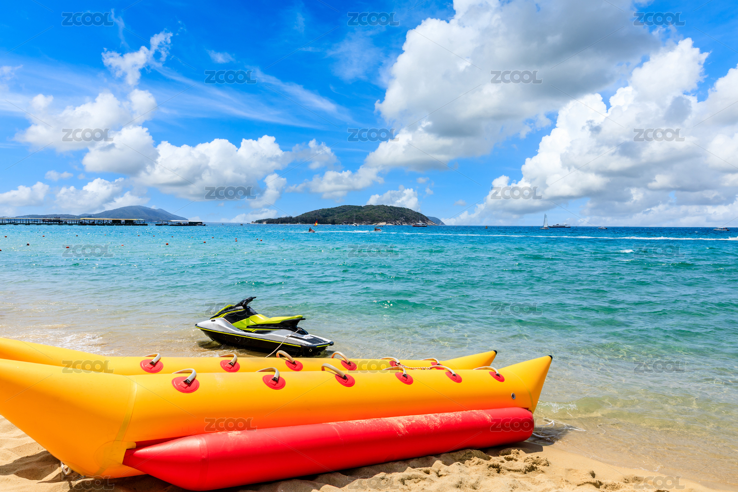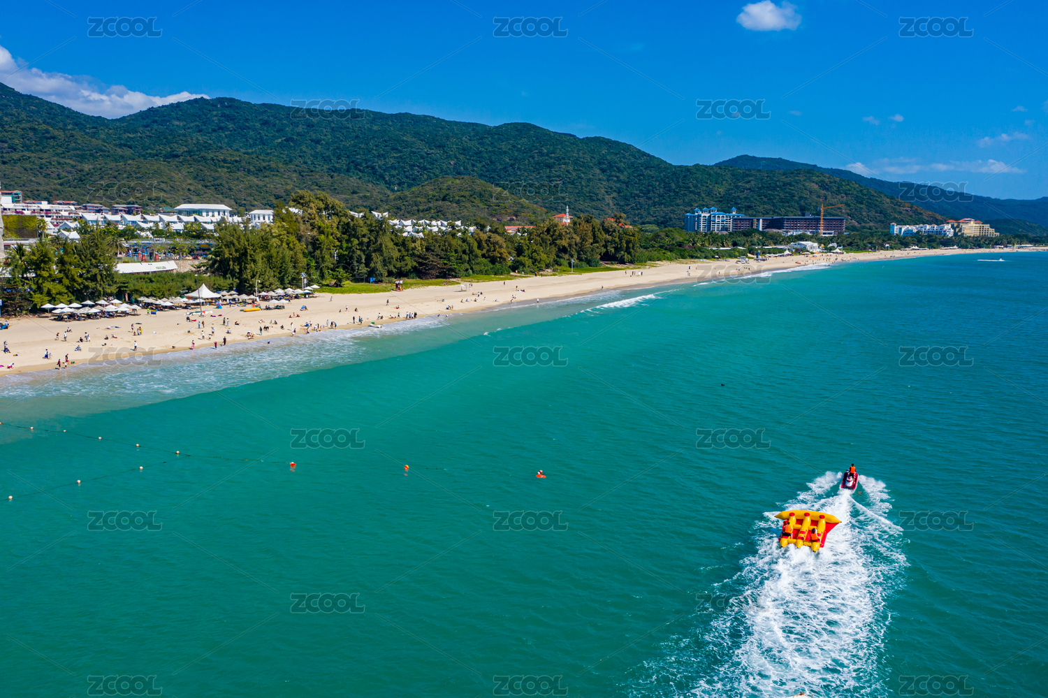 航拍海南三亞亞龍灣快艇香蕉船海上娛樂項目