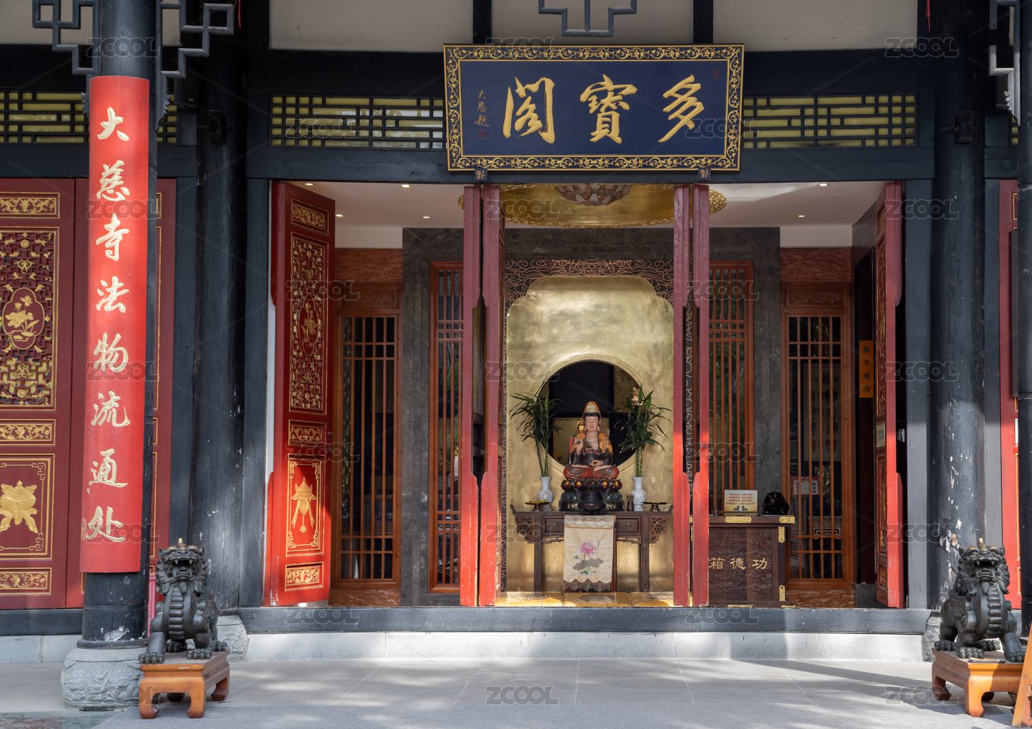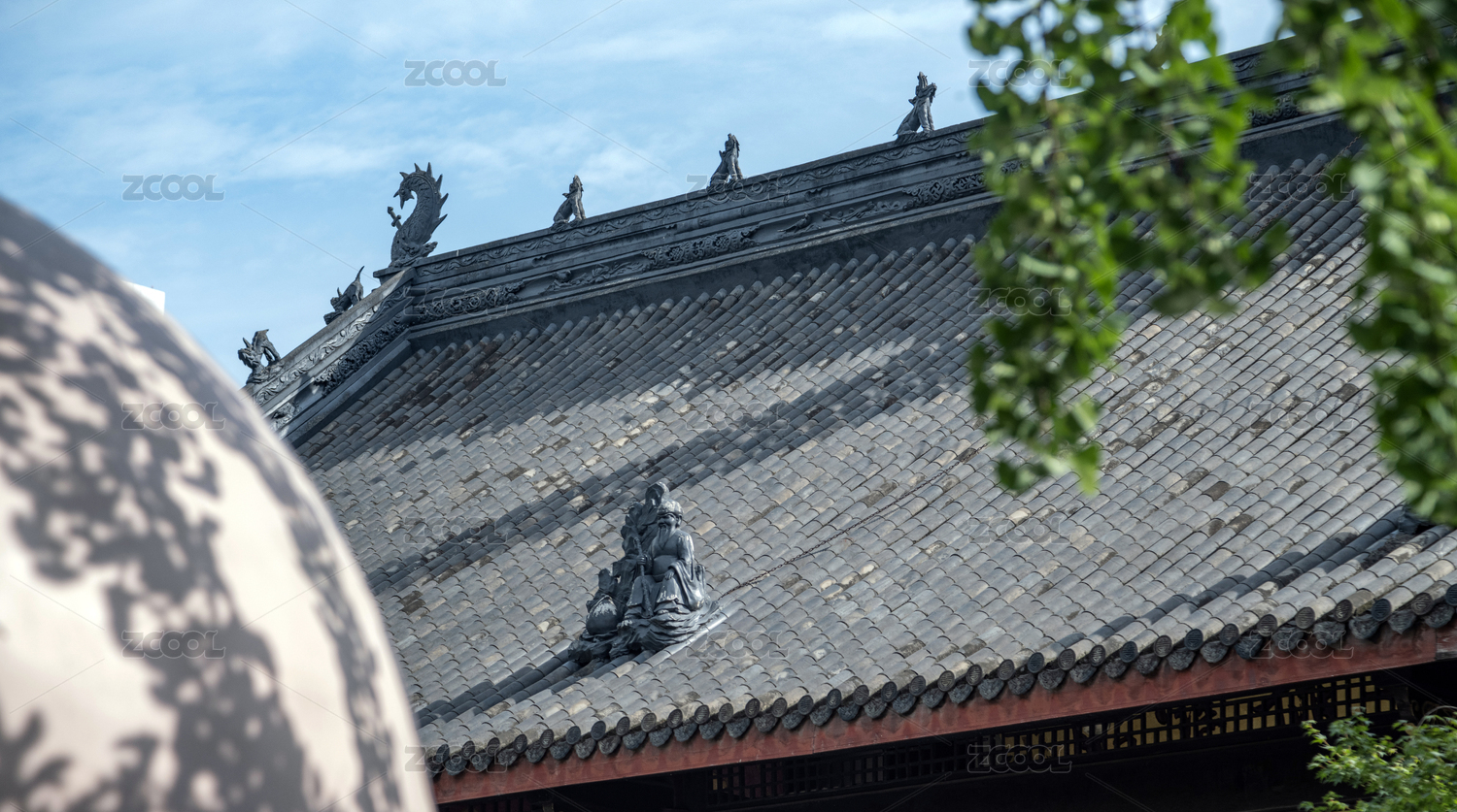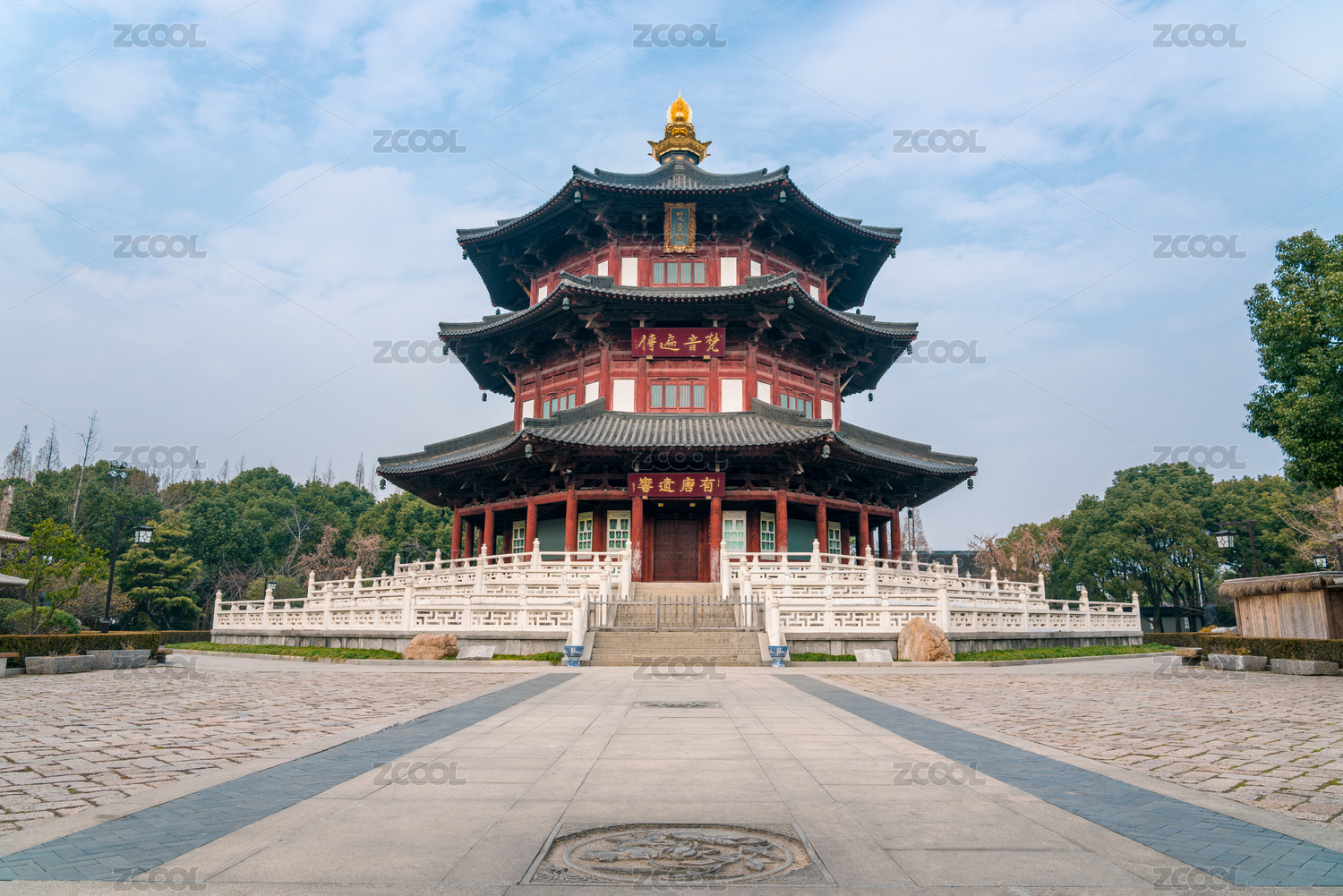 中國(guó)上海寒山寺景區(qū)晴天建筑風(fēng)光