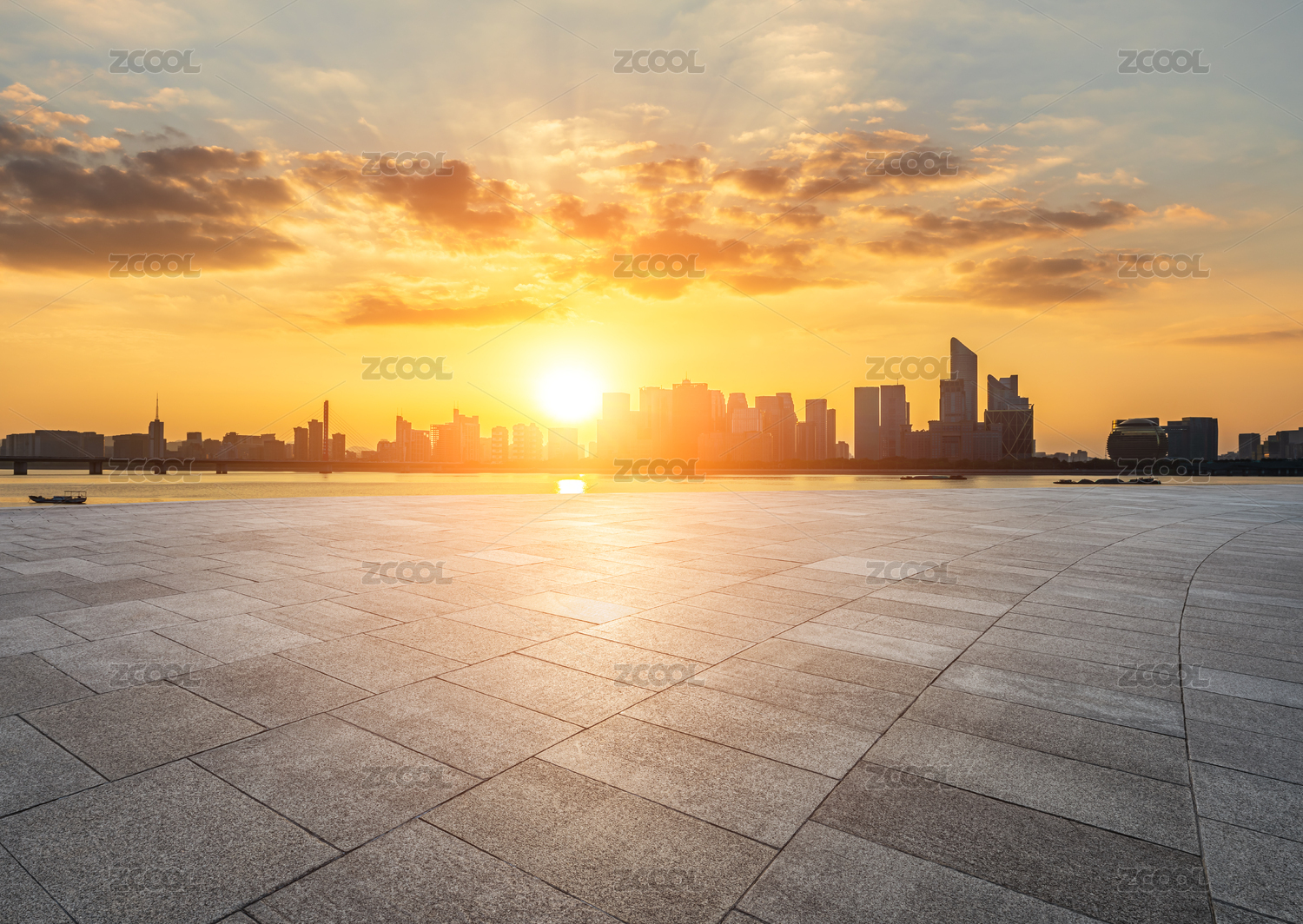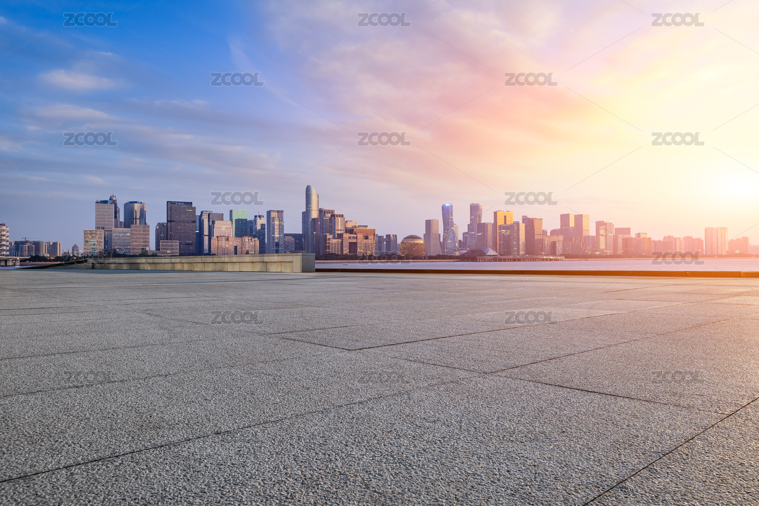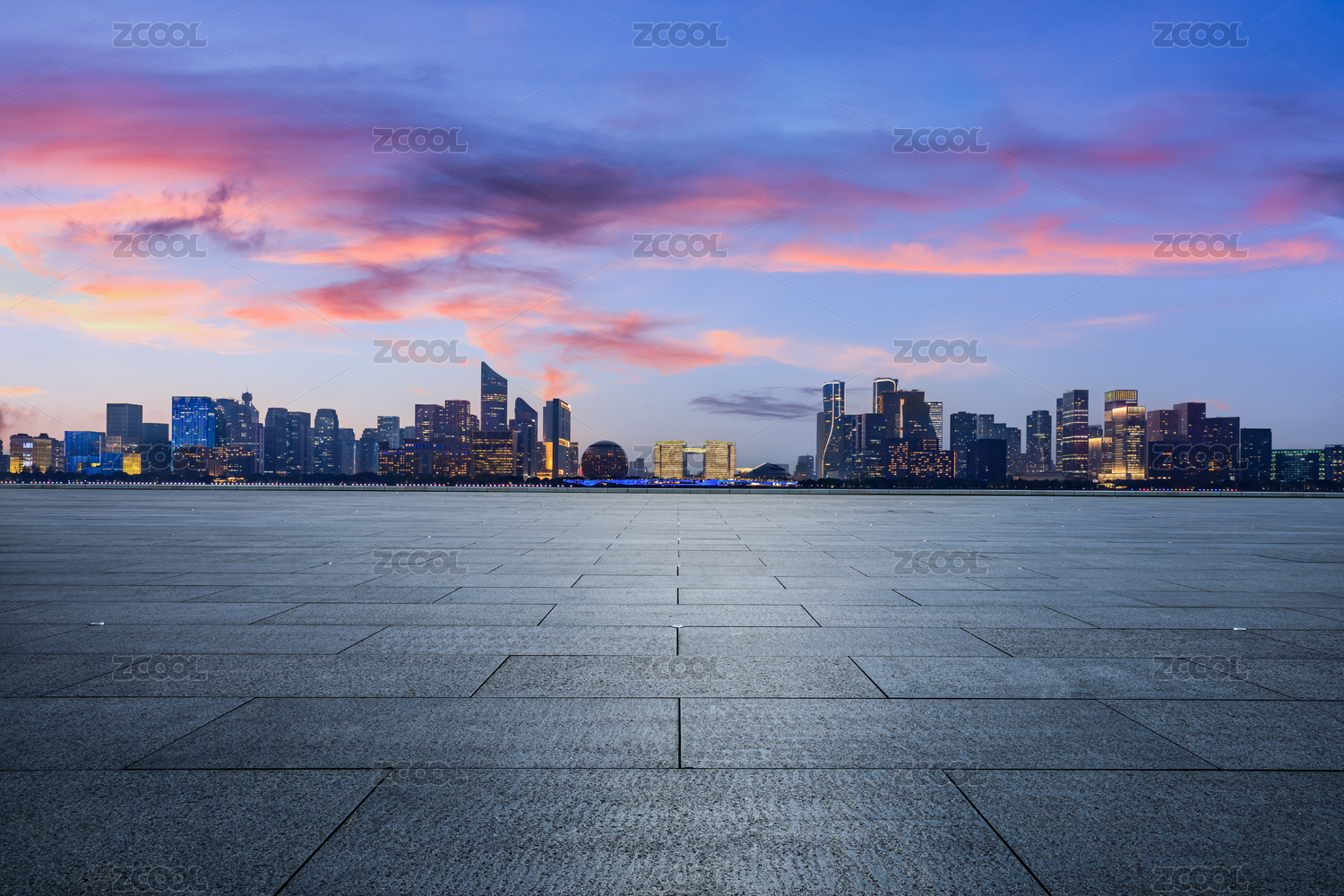 中國(guó)浙江杭州現(xiàn)代城市建筑風(fēng)光和廣場(chǎng)道路