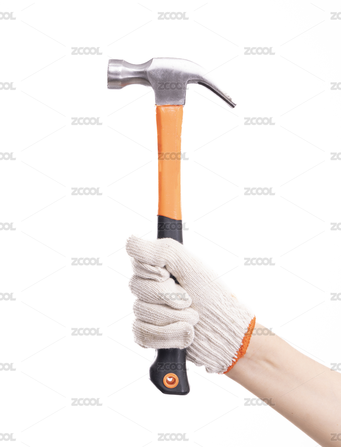 帶著手套的右手拿著一把錘子