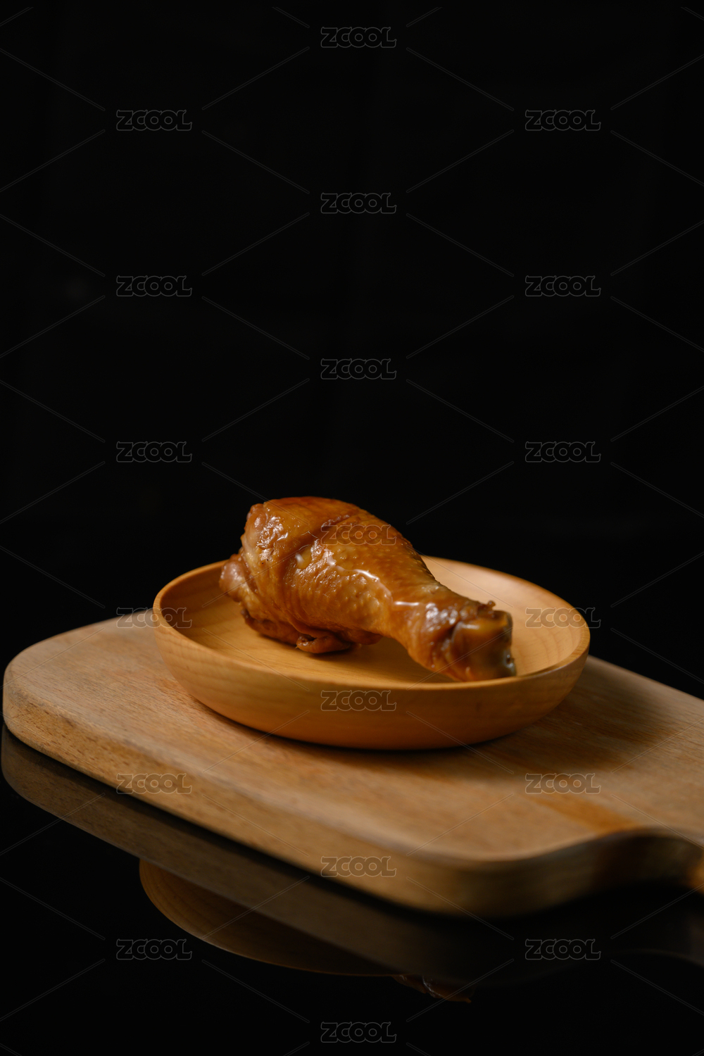 木桌上的鹵雞腿