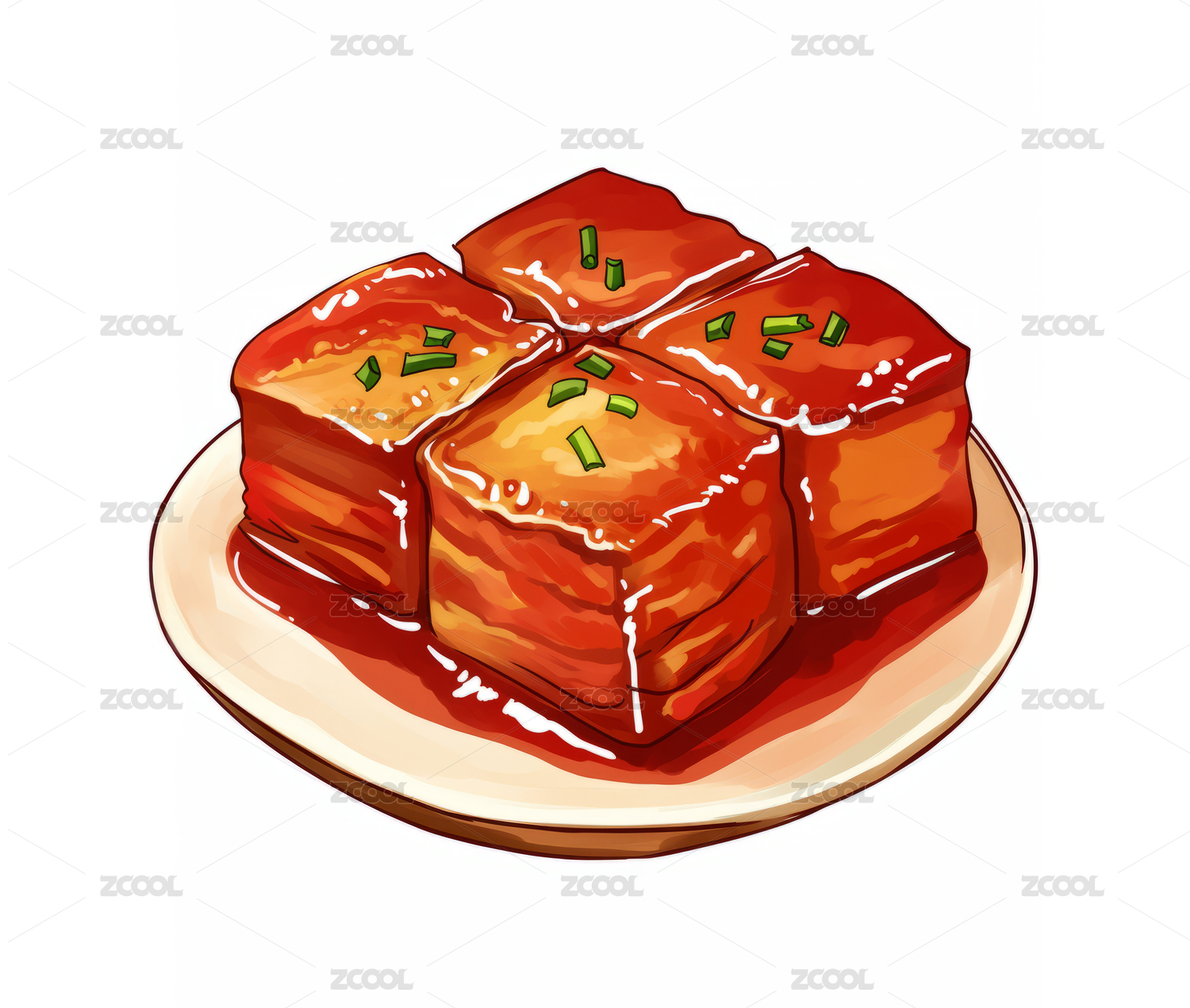 一盤東坡肉插畫