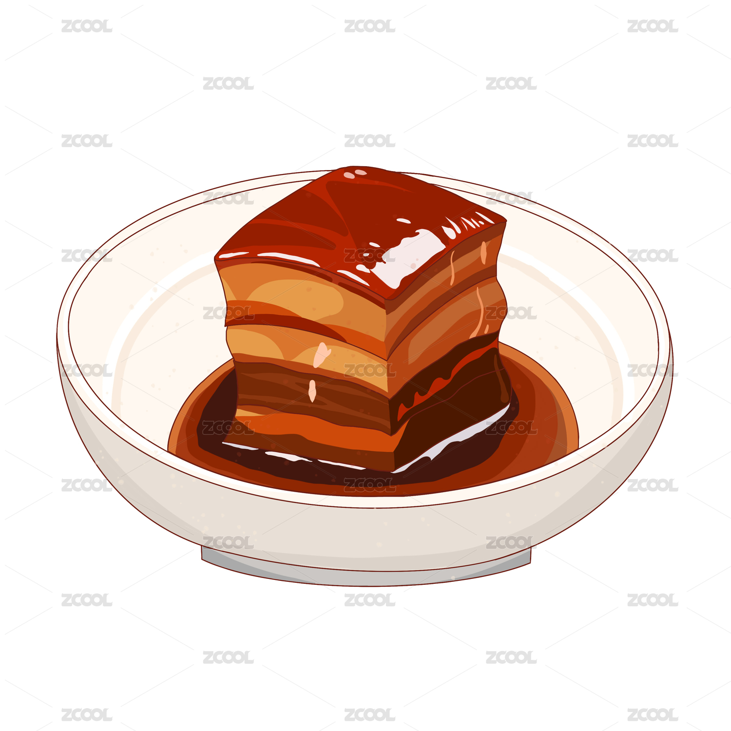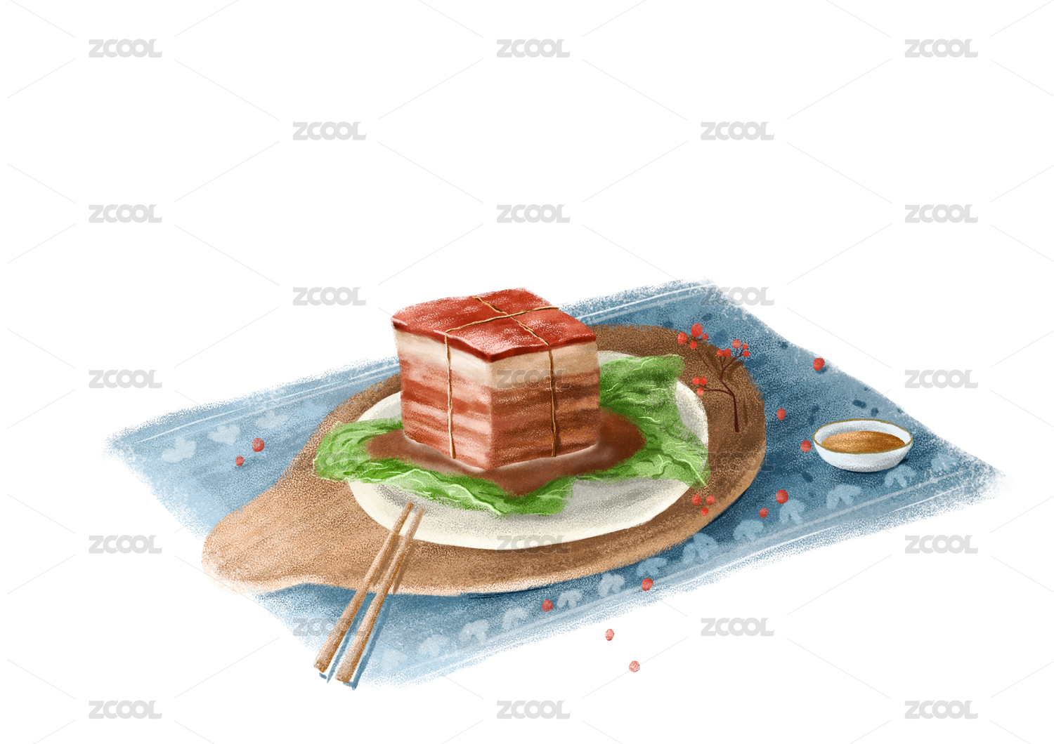 杭州特色美食東坡肉手繪插畫