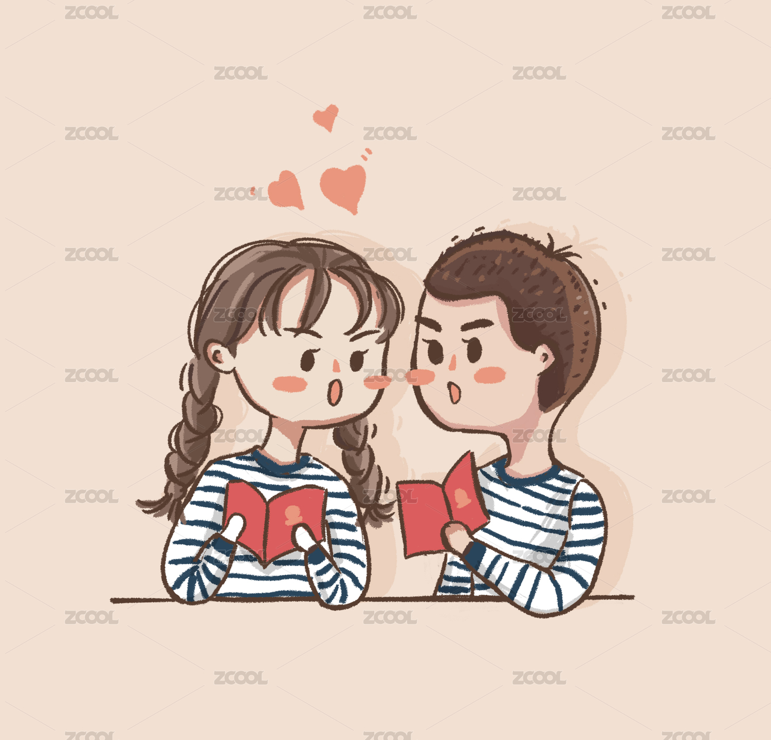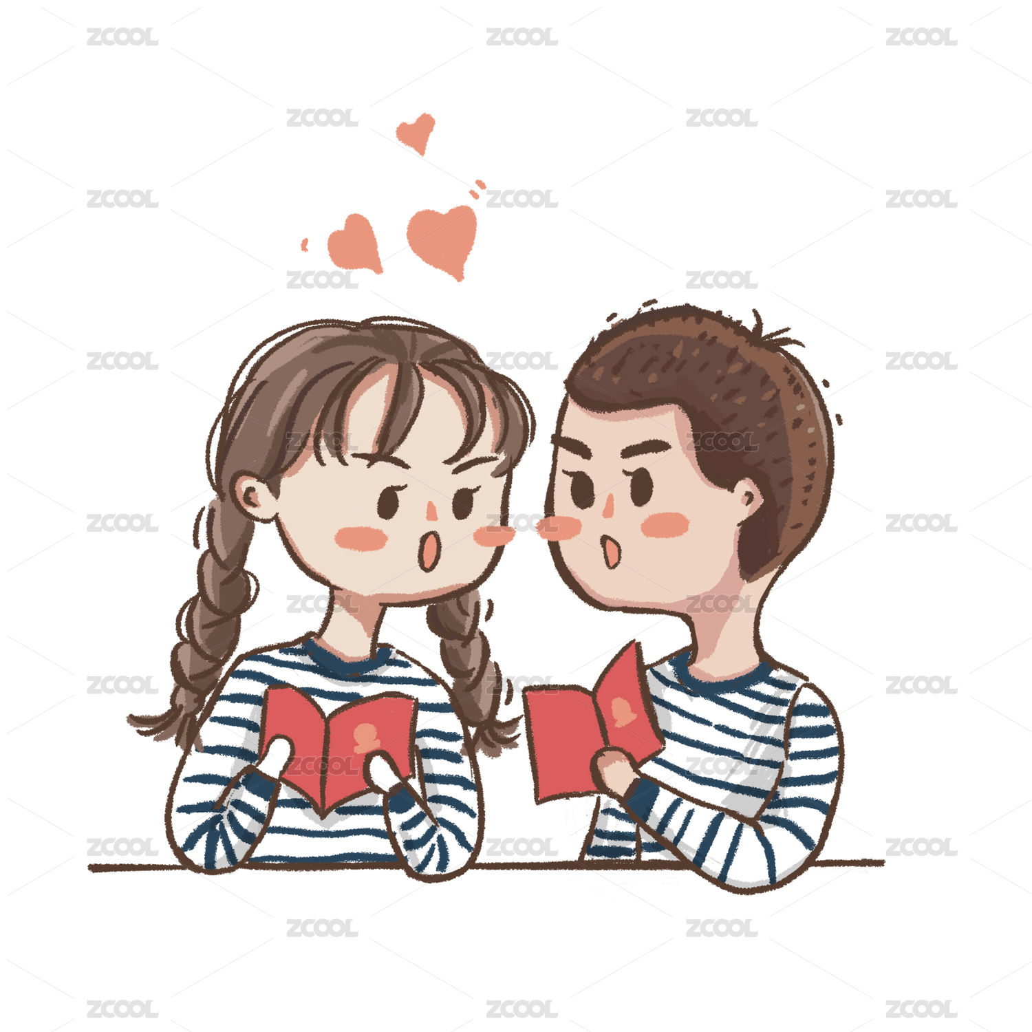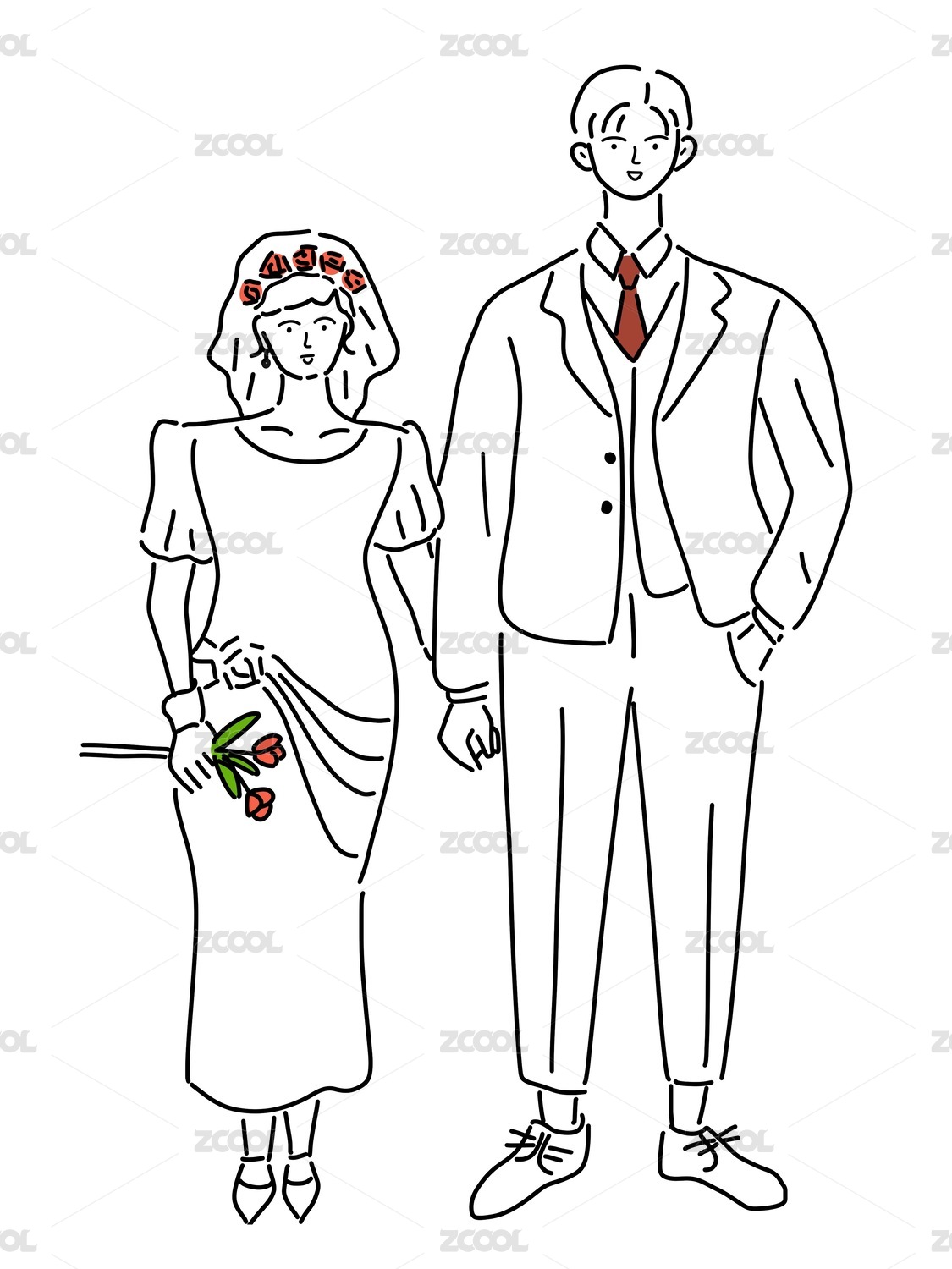 手拿結(jié)婚證的情侶卡通描邊風(fēng)格頭