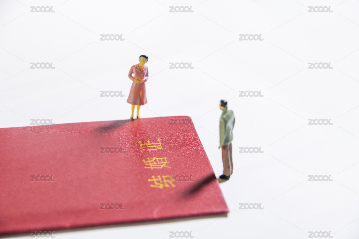 藍(lán)色背景上的微縮小人偶們關(guān)于婚姻的圍城