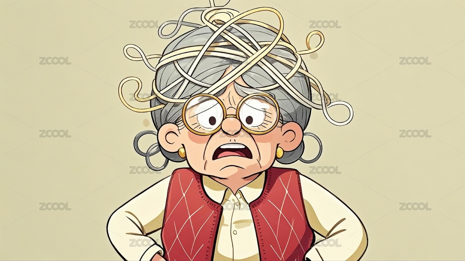 驚慌失措健忘的老奶奶