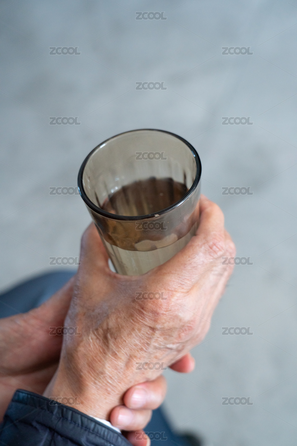 健忘的老人在茶幾上重復(fù)擺放飲品