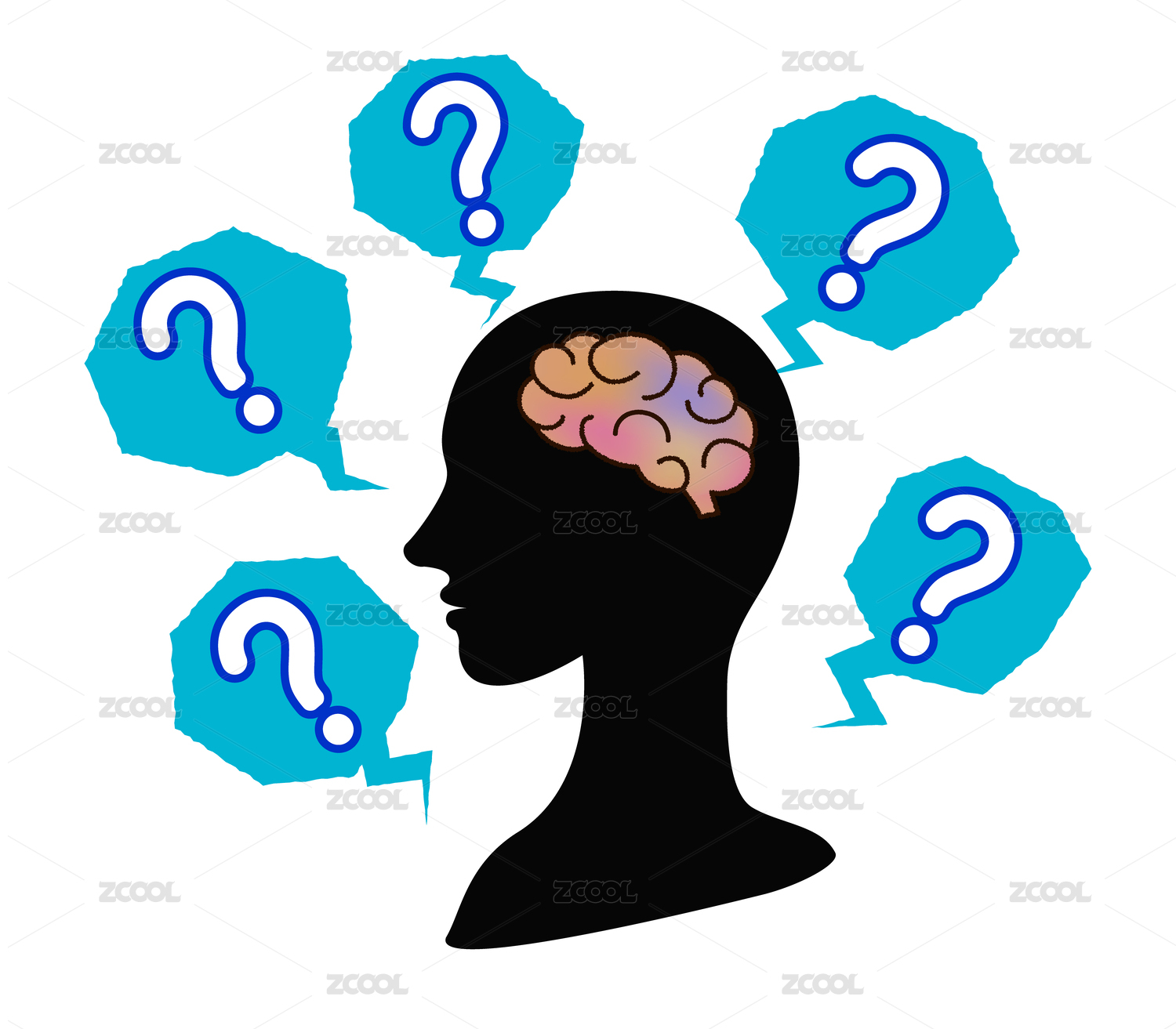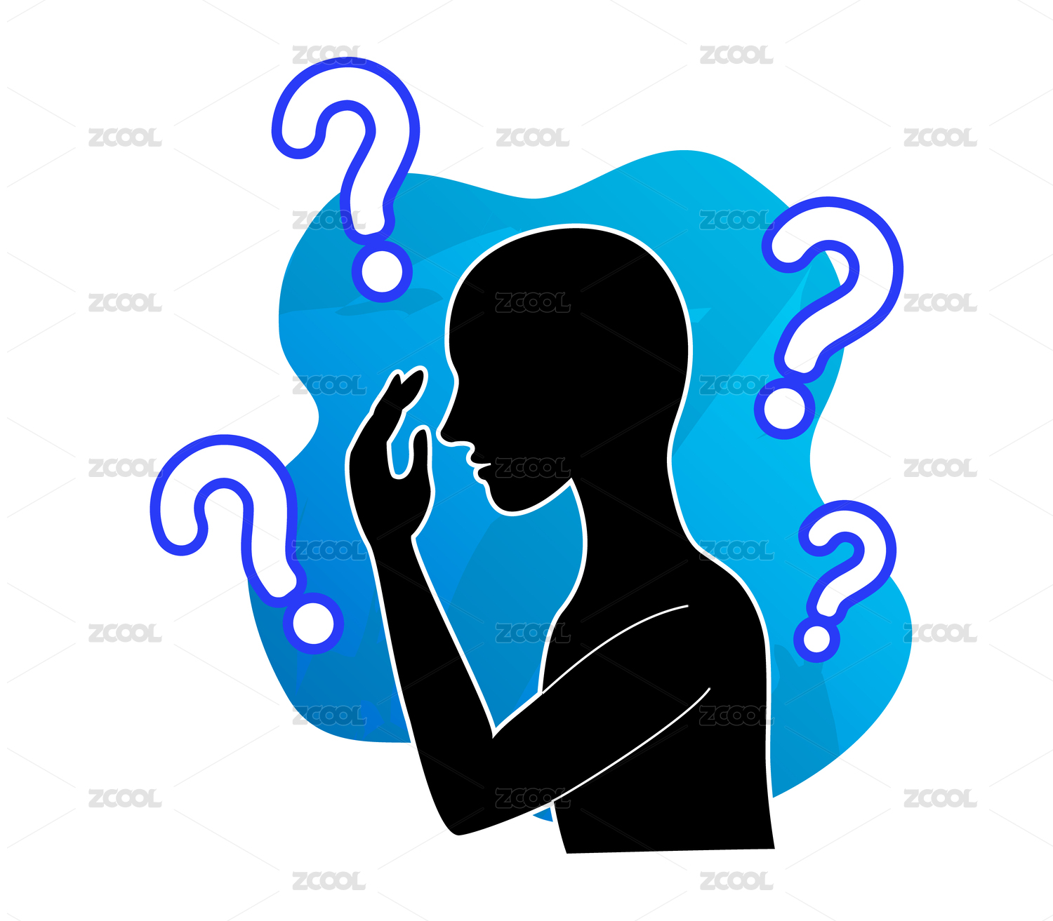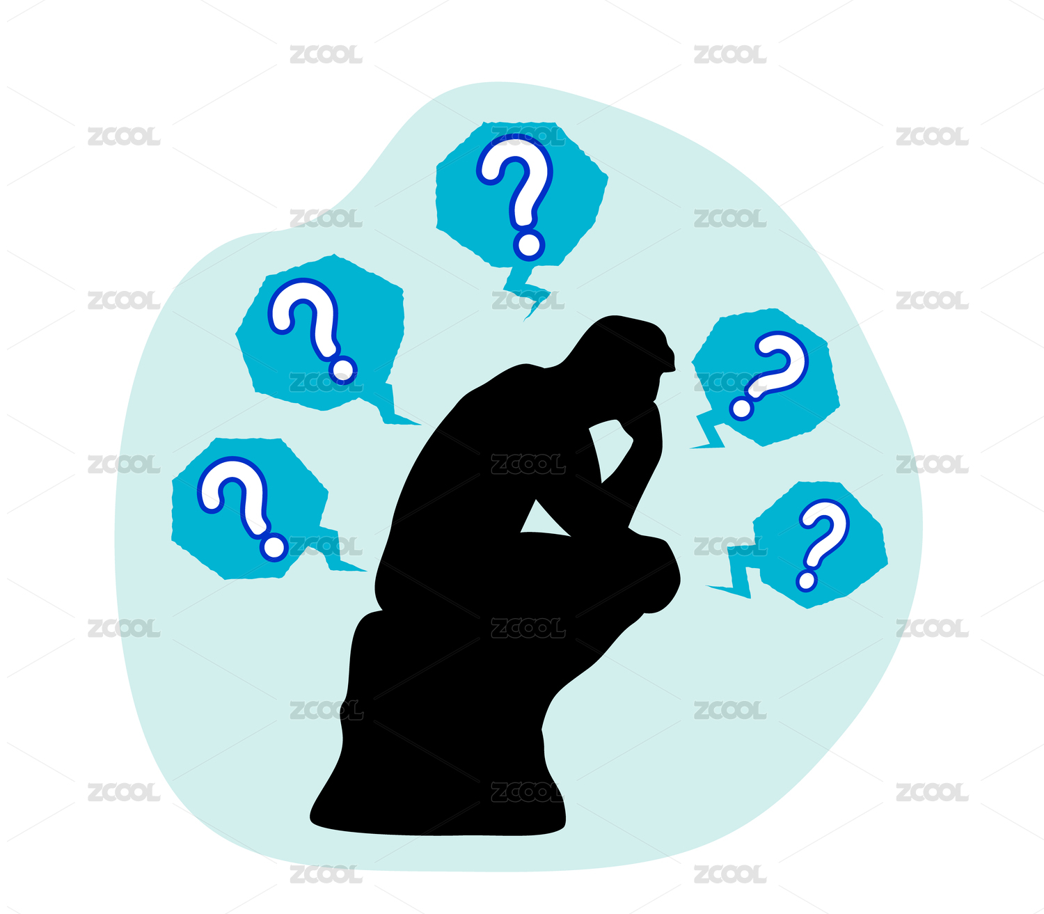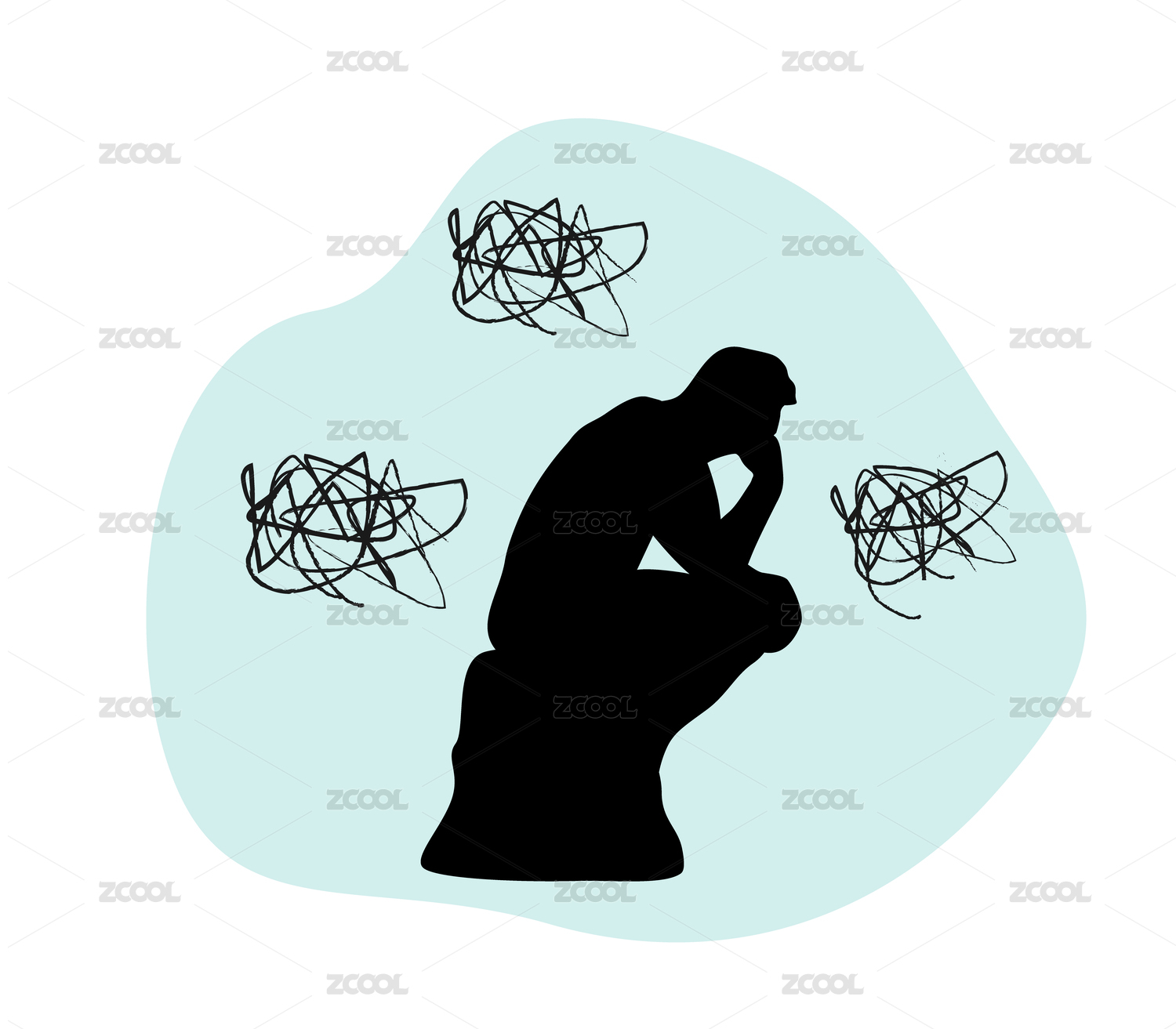 思考者雕像剪影 頭疼人物