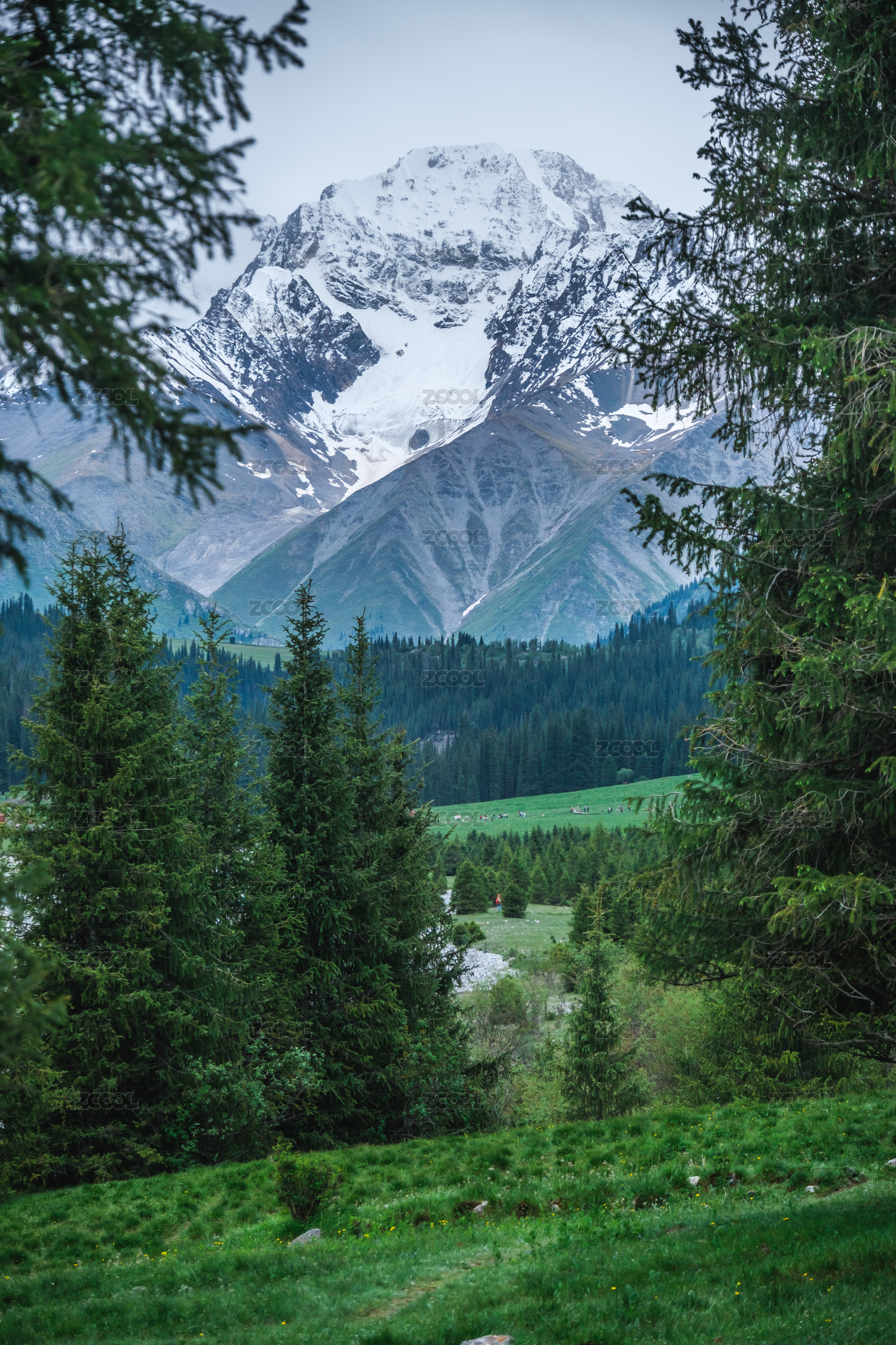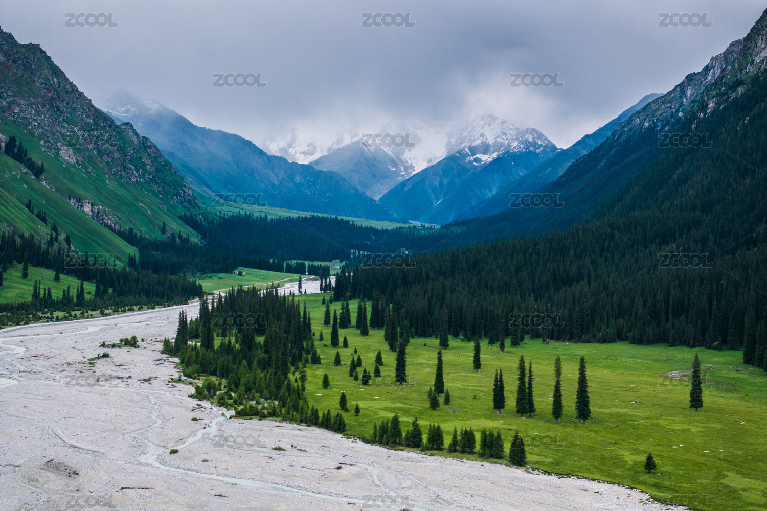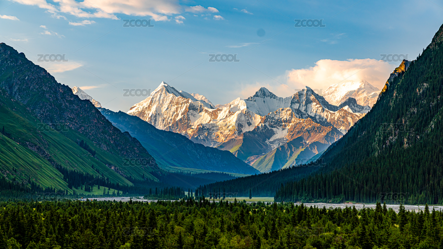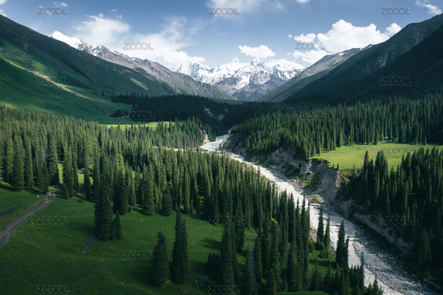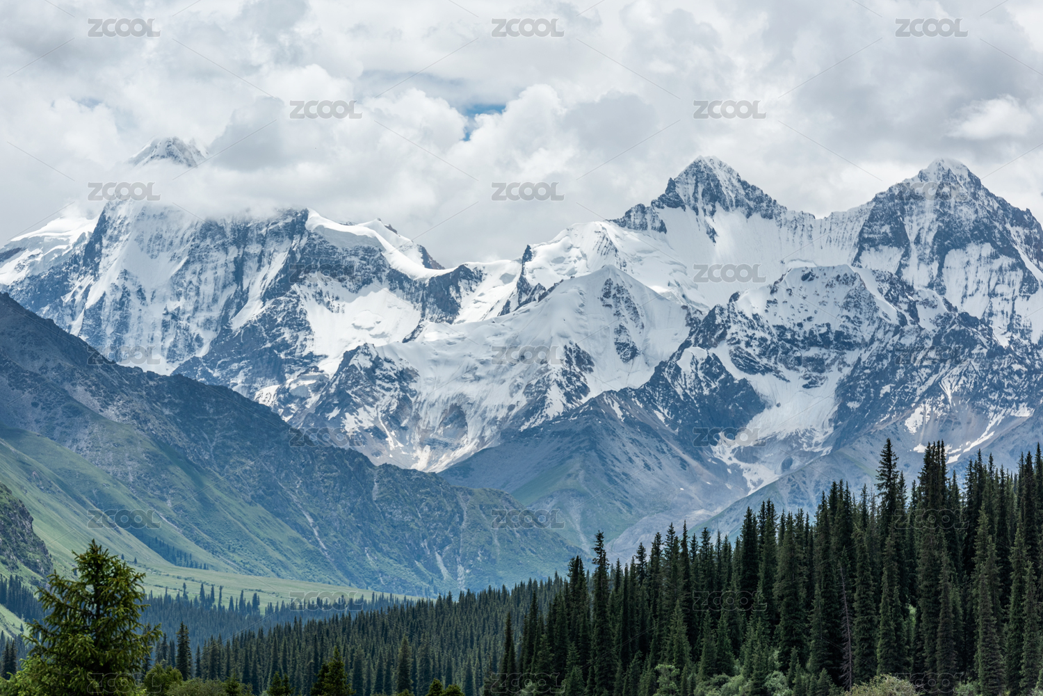 中國(guó)新疆伊犁昭蘇縣的夏塔峽谷和天山雪山