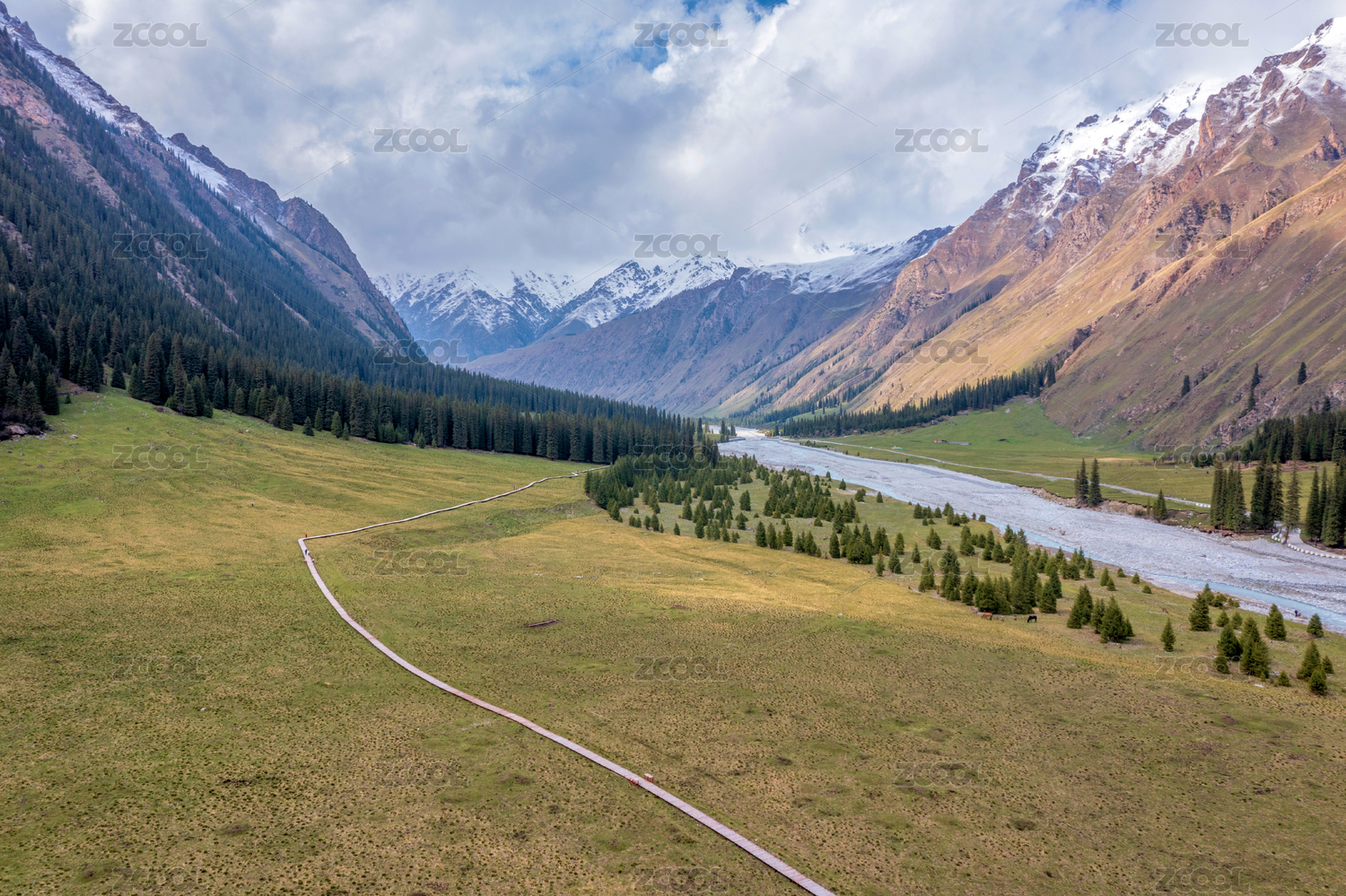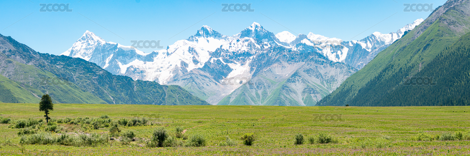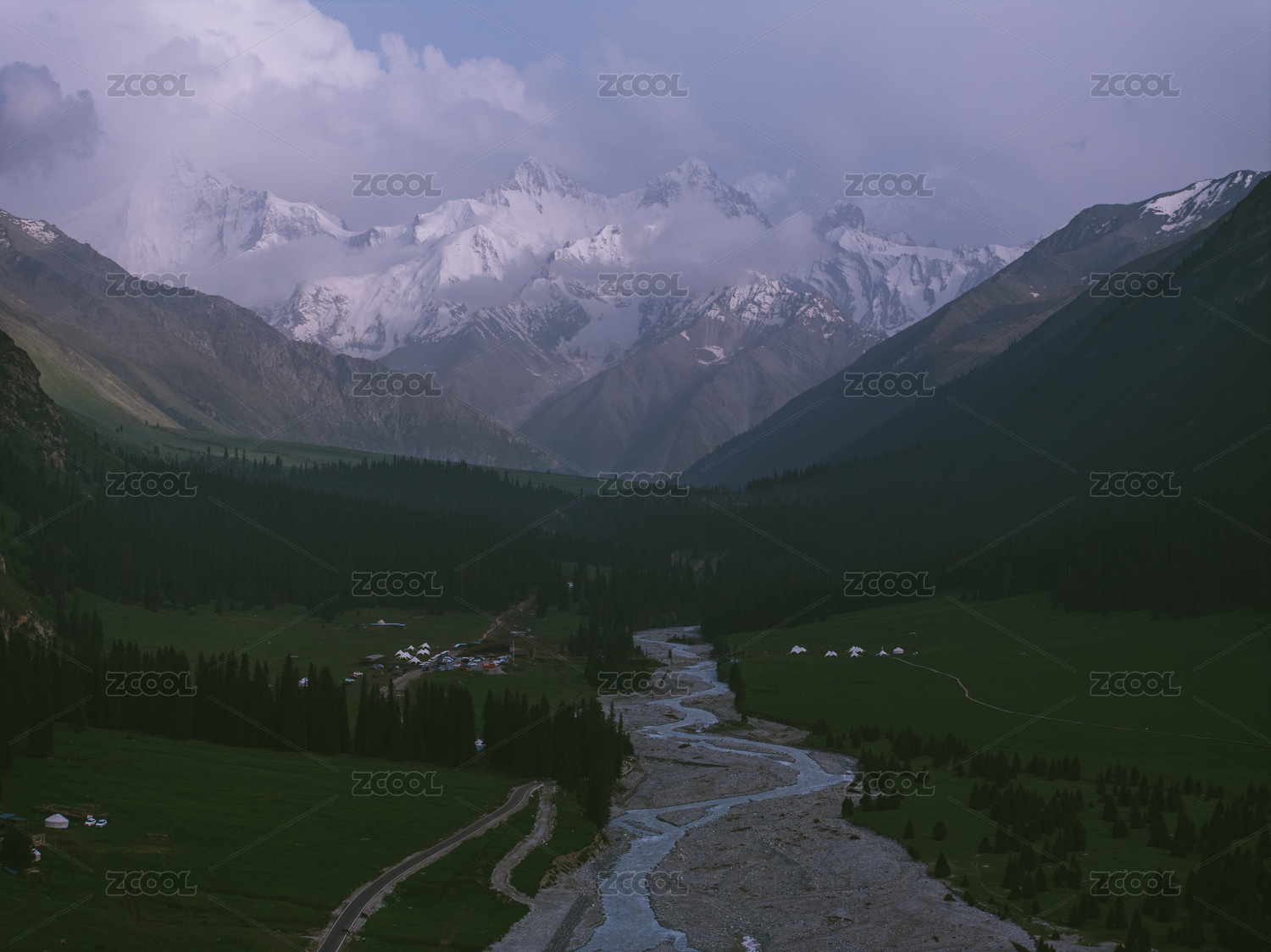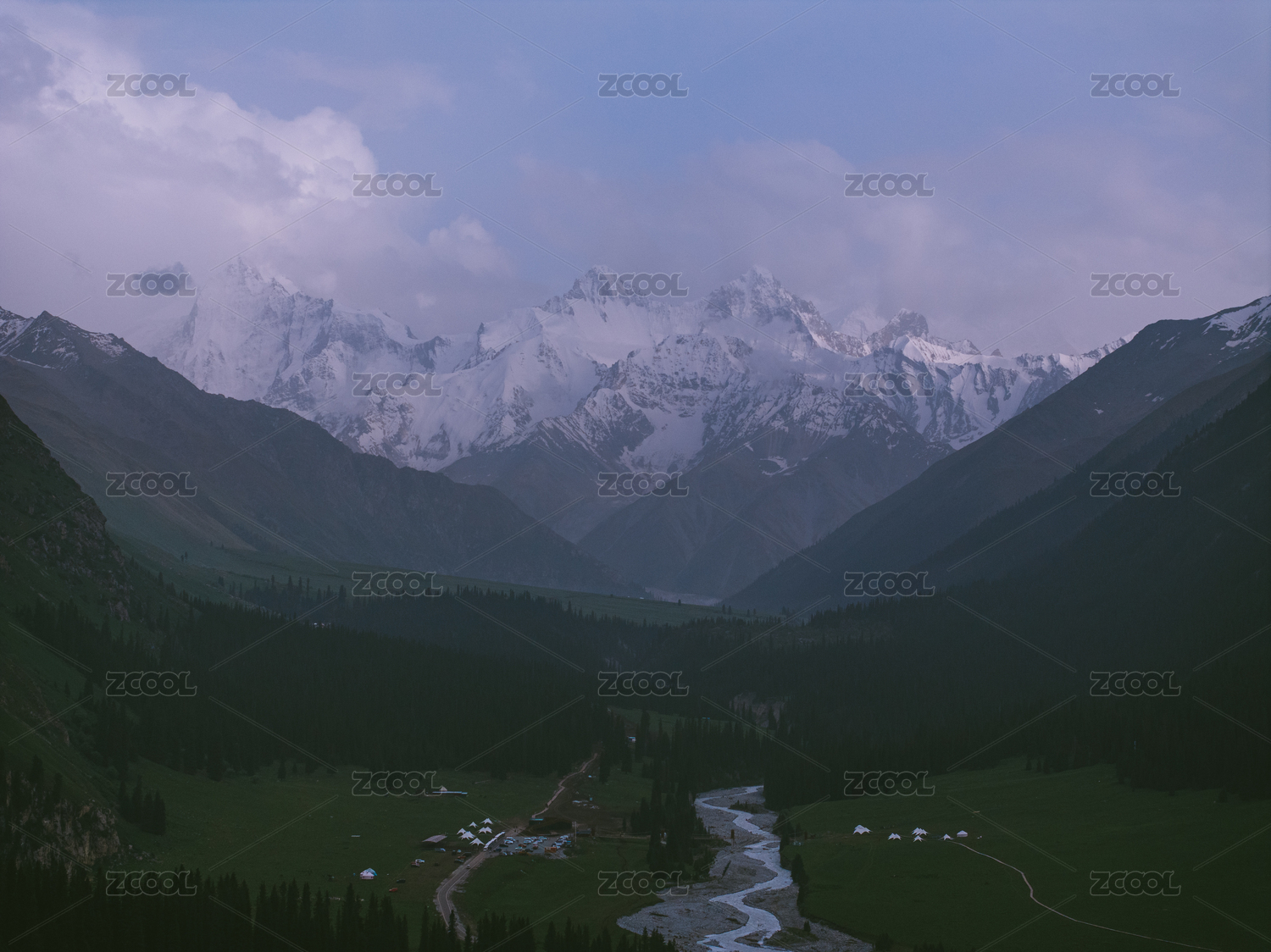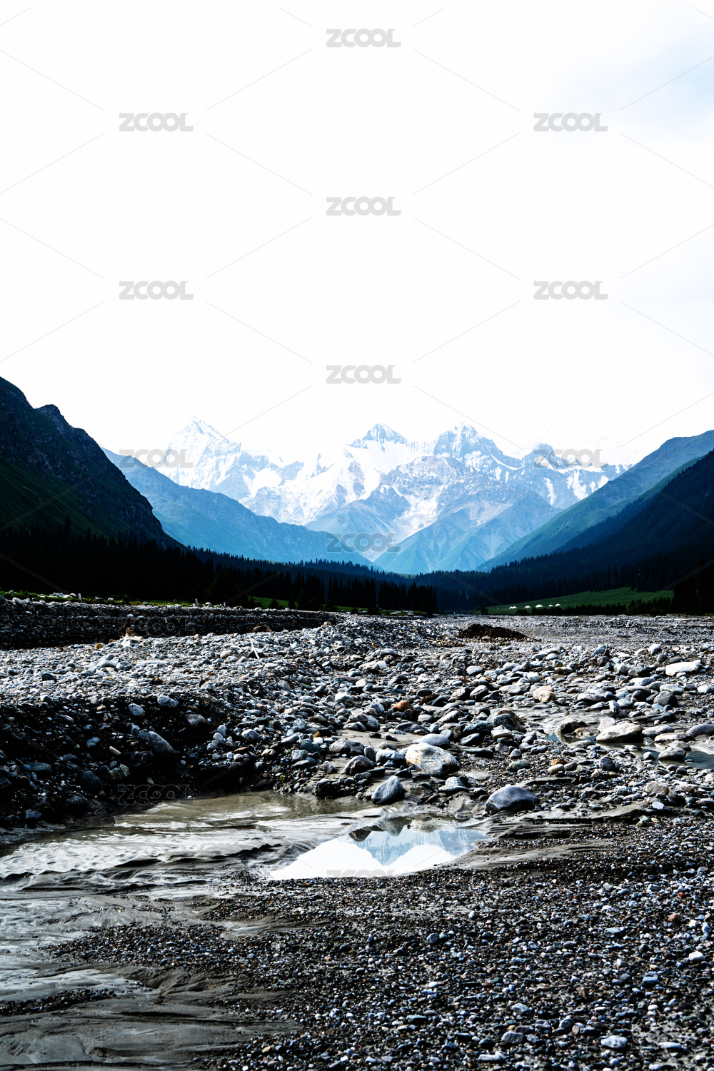 中國(guó)新疆伊犁昭蘇縣的夏塔峽谷和天山雪山