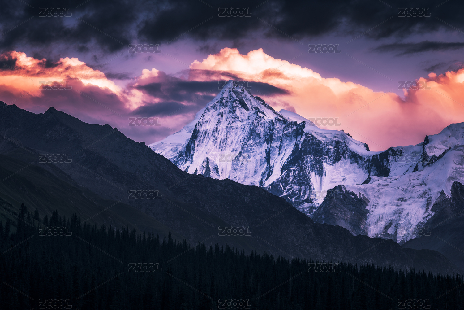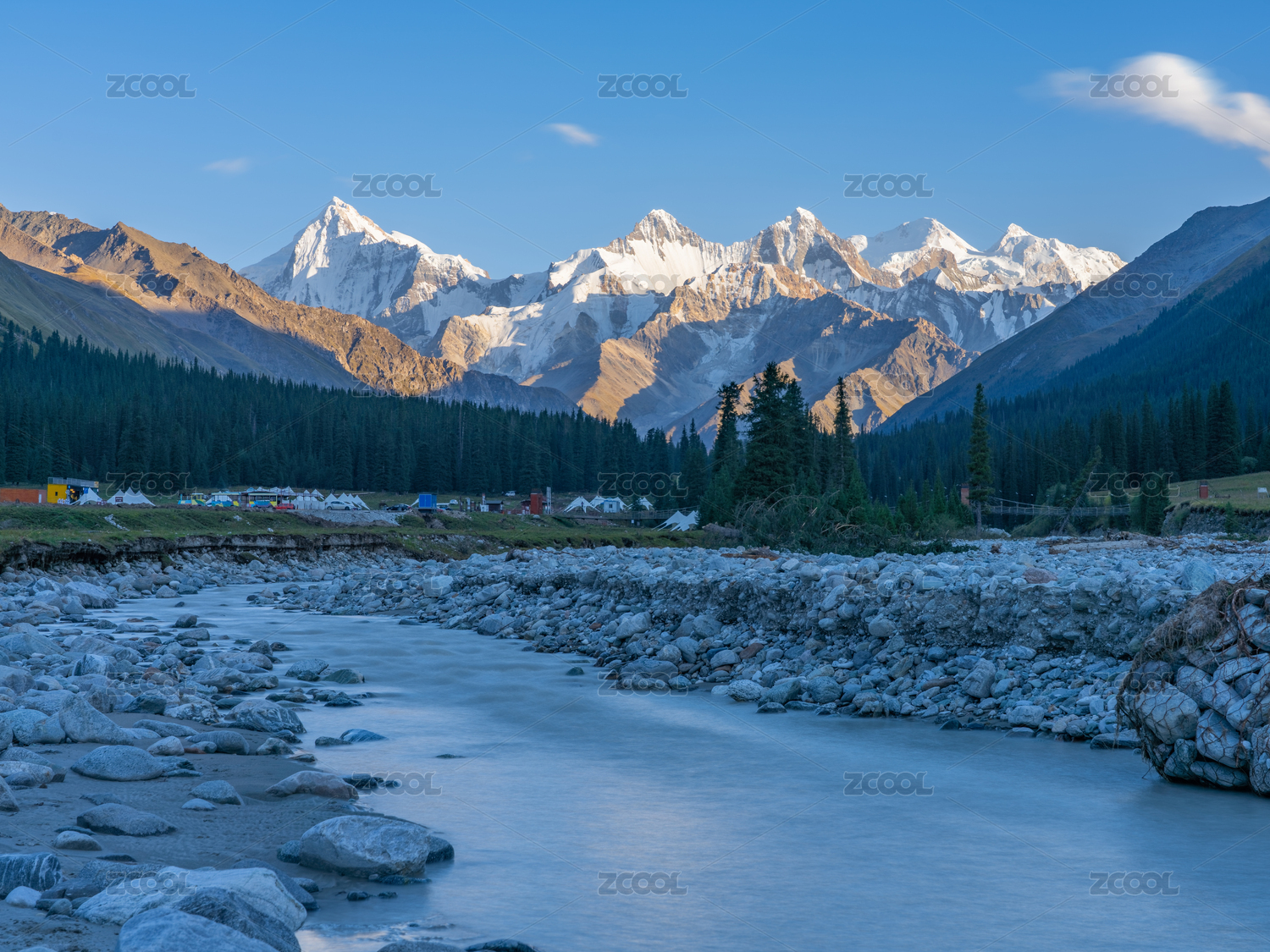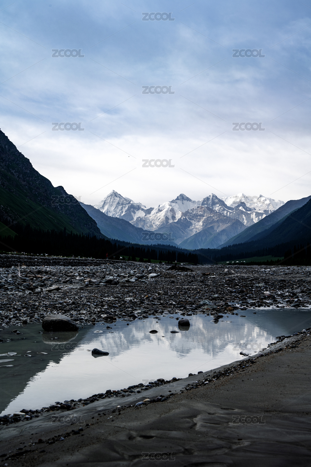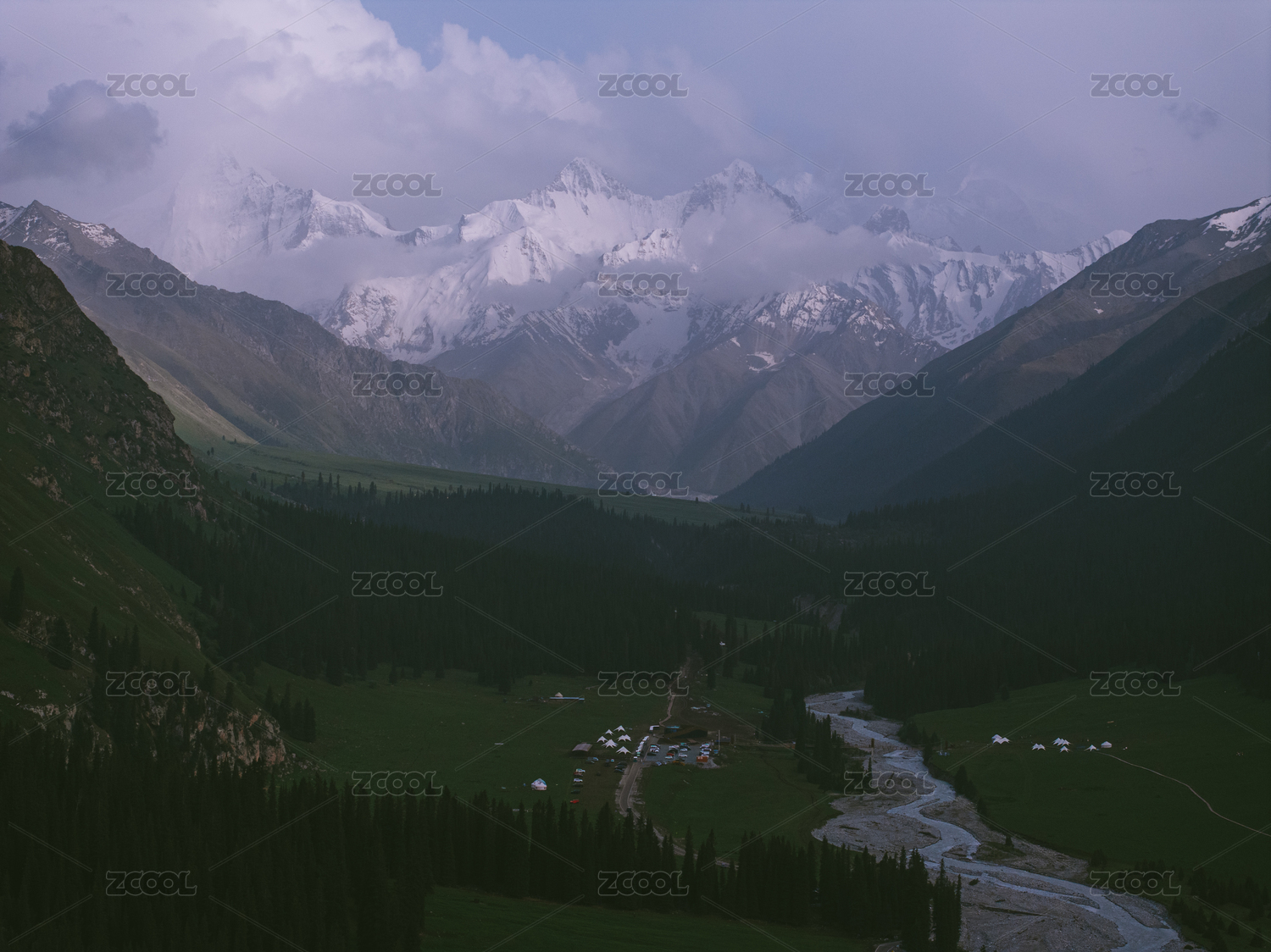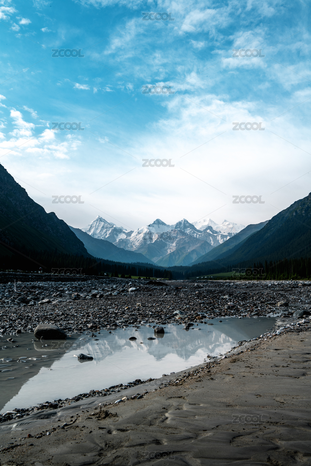 中國(guó)新疆伊犁昭蘇縣的夏塔峽谷和天山雪山