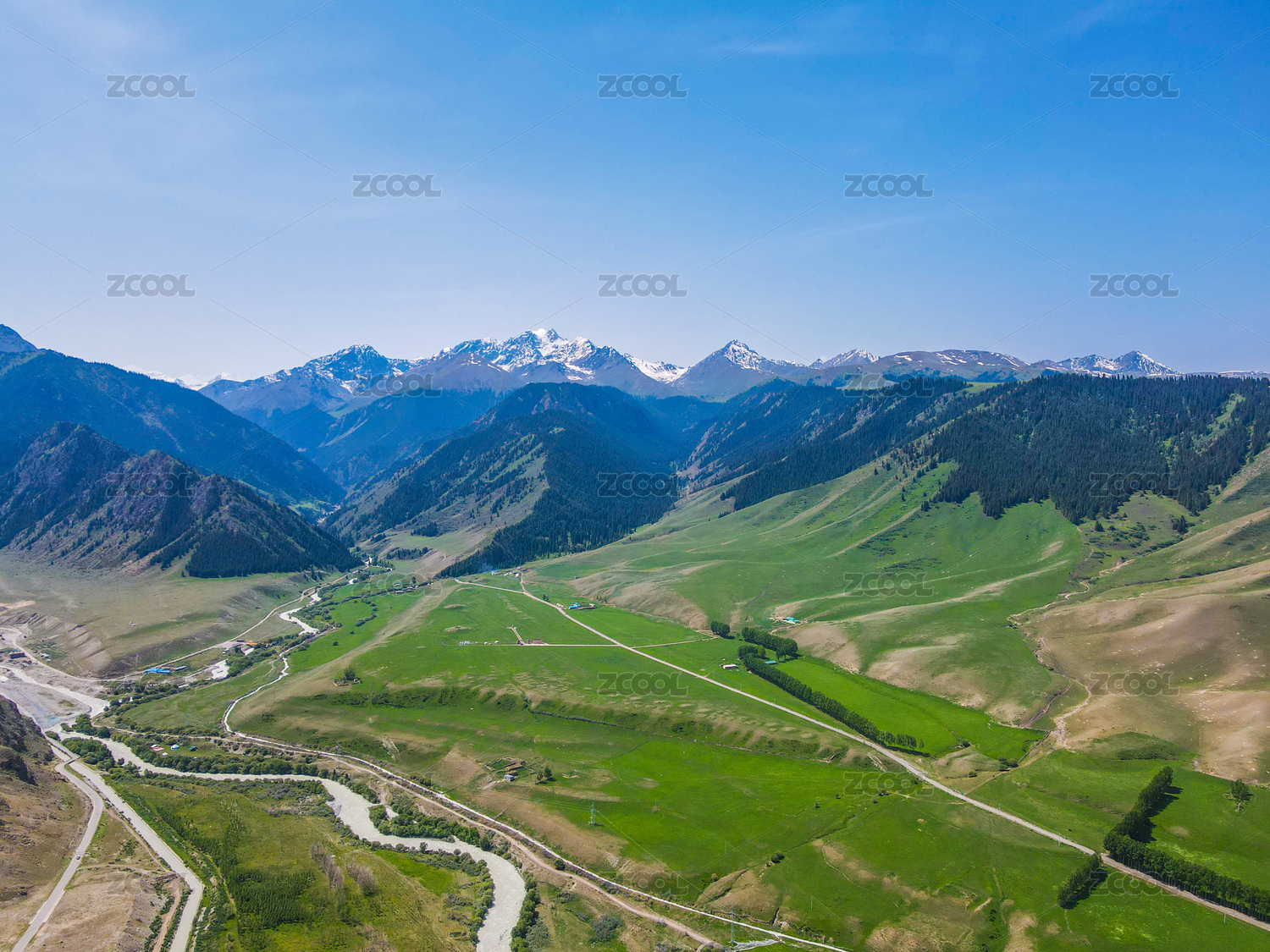 中國(guó)新疆伊犁昭蘇夏塔古道草原雪山自然風(fēng)光