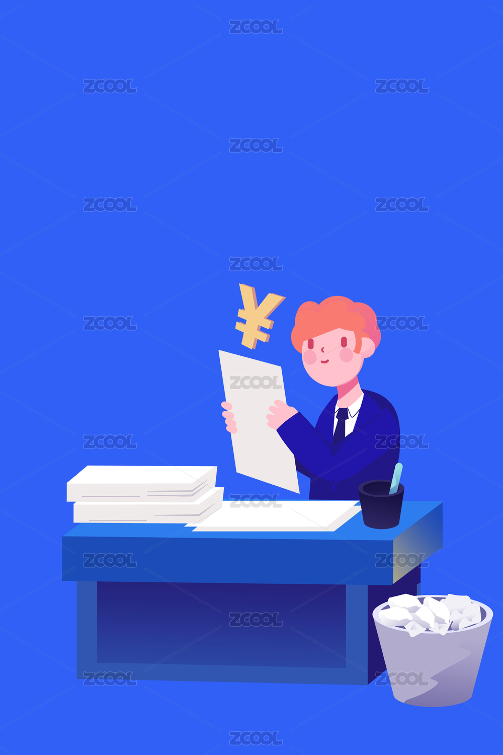 卡通手繪金融業(yè)績報表股票理財(cái)基金升值職場精英加班插畫
