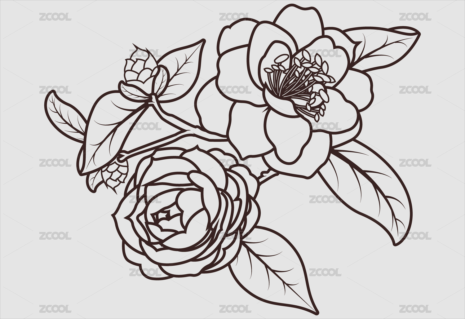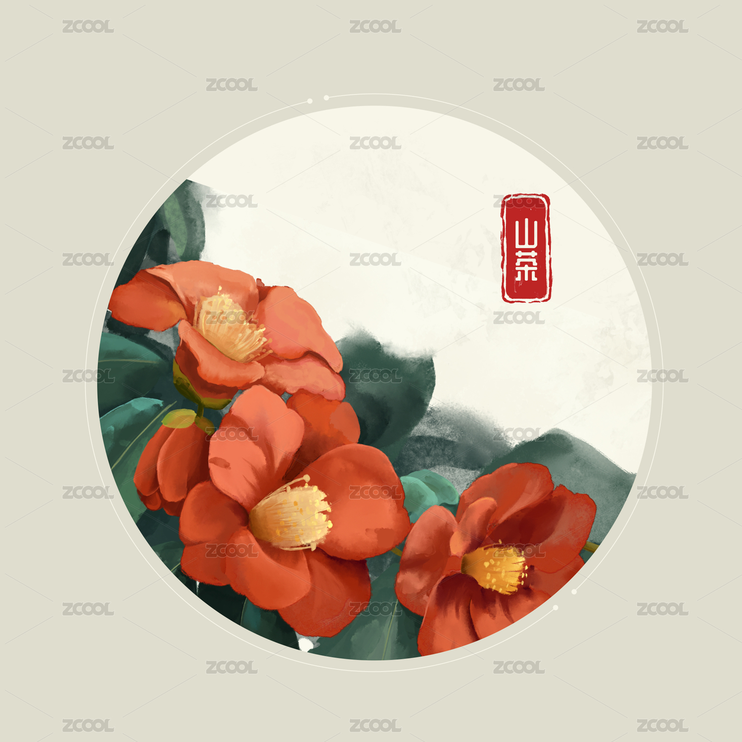 古風(fēng)水彩花卉山茶花花枝國(guó)畫(huà)