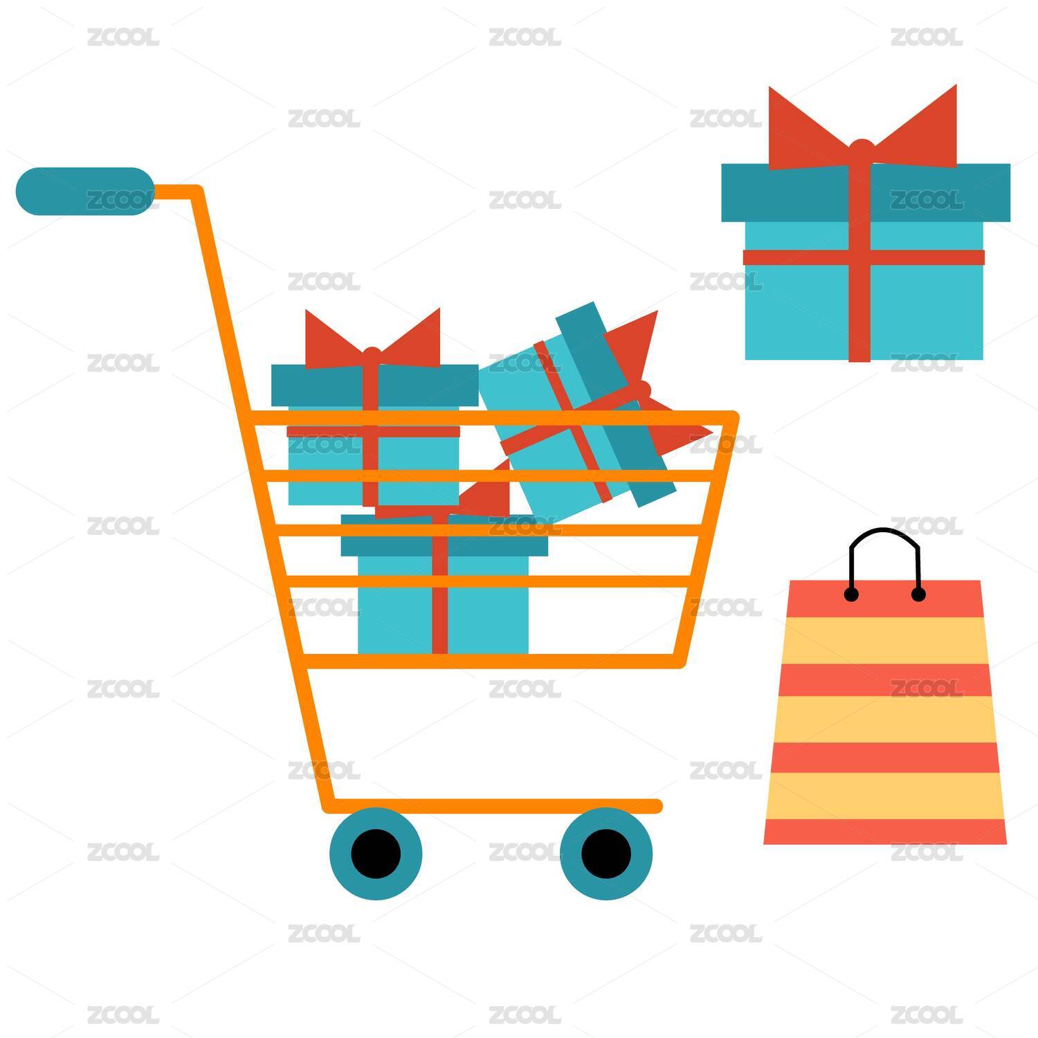 矢量扁平購(gòu)物車(chē)購(gòu)物袋禮盒圖案圖標(biāo)設(shè)計(jì)素材