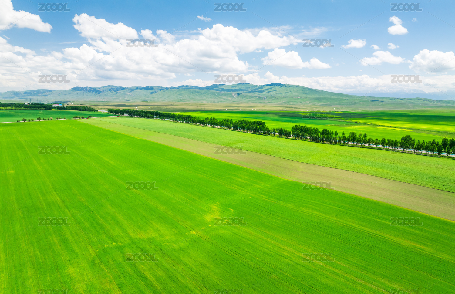 中國新疆伊犁昭蘇一望無際的田野風光航拍