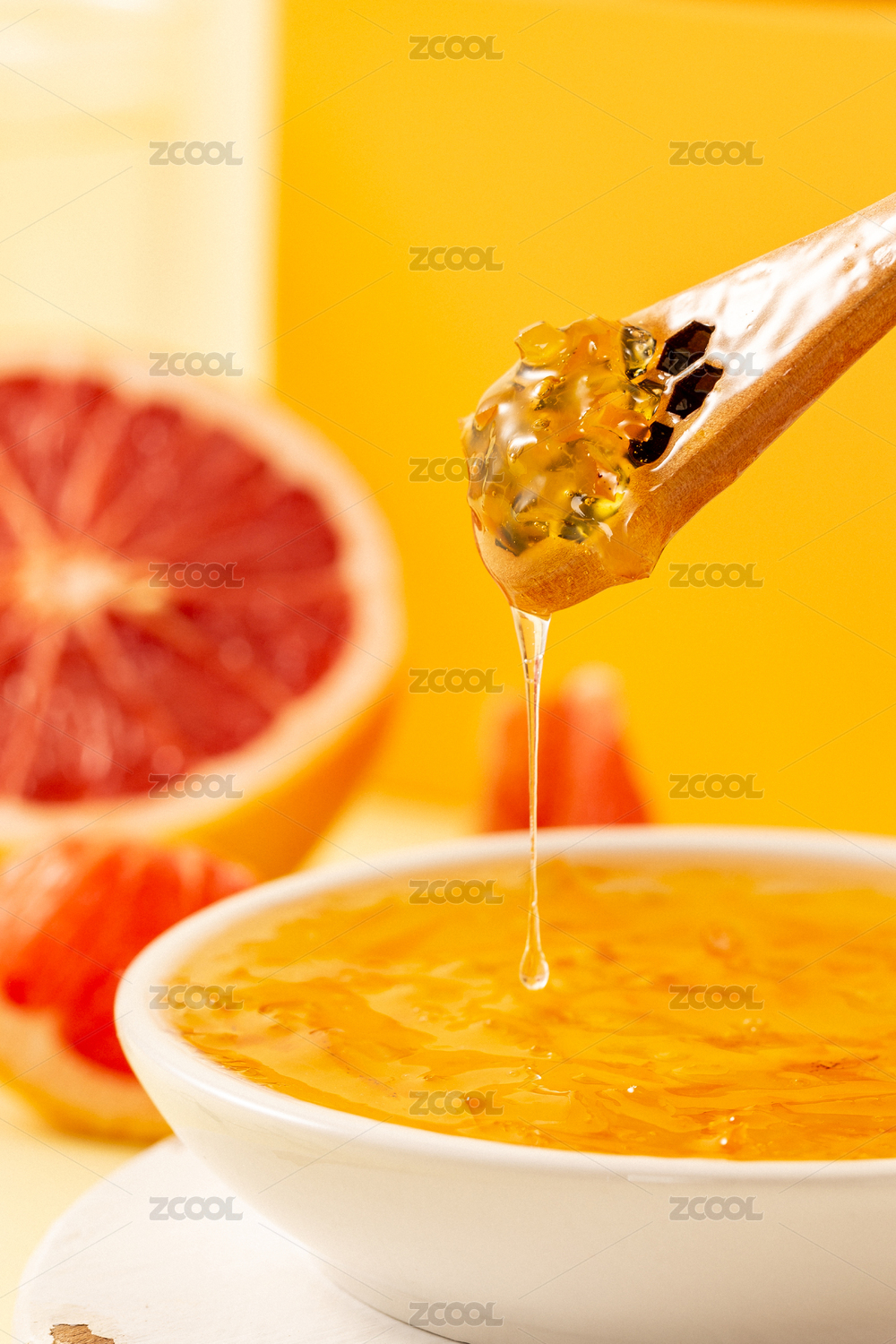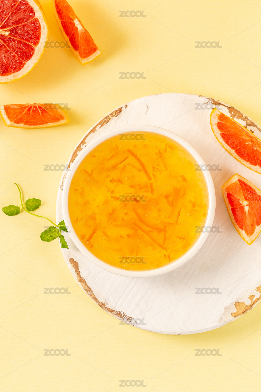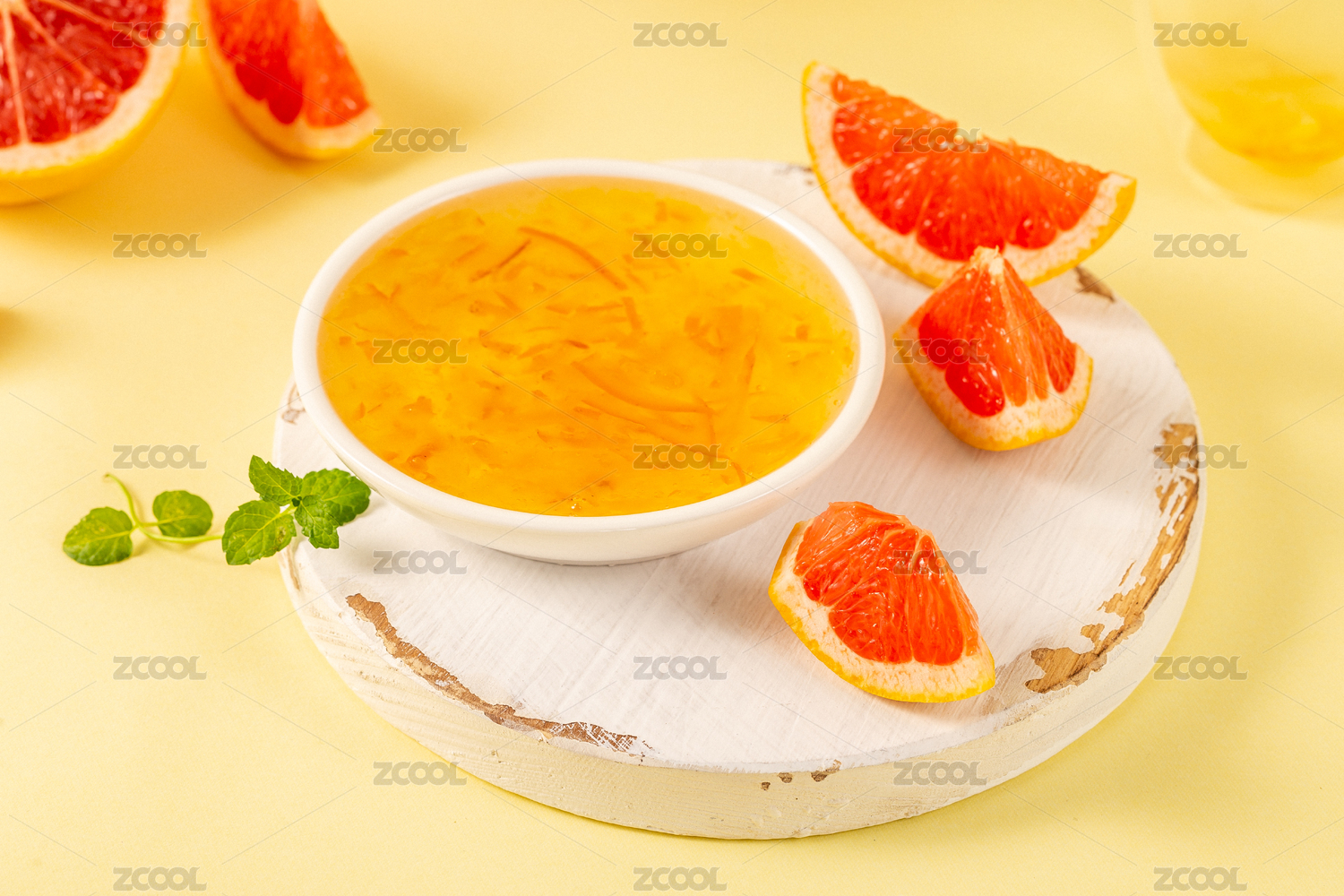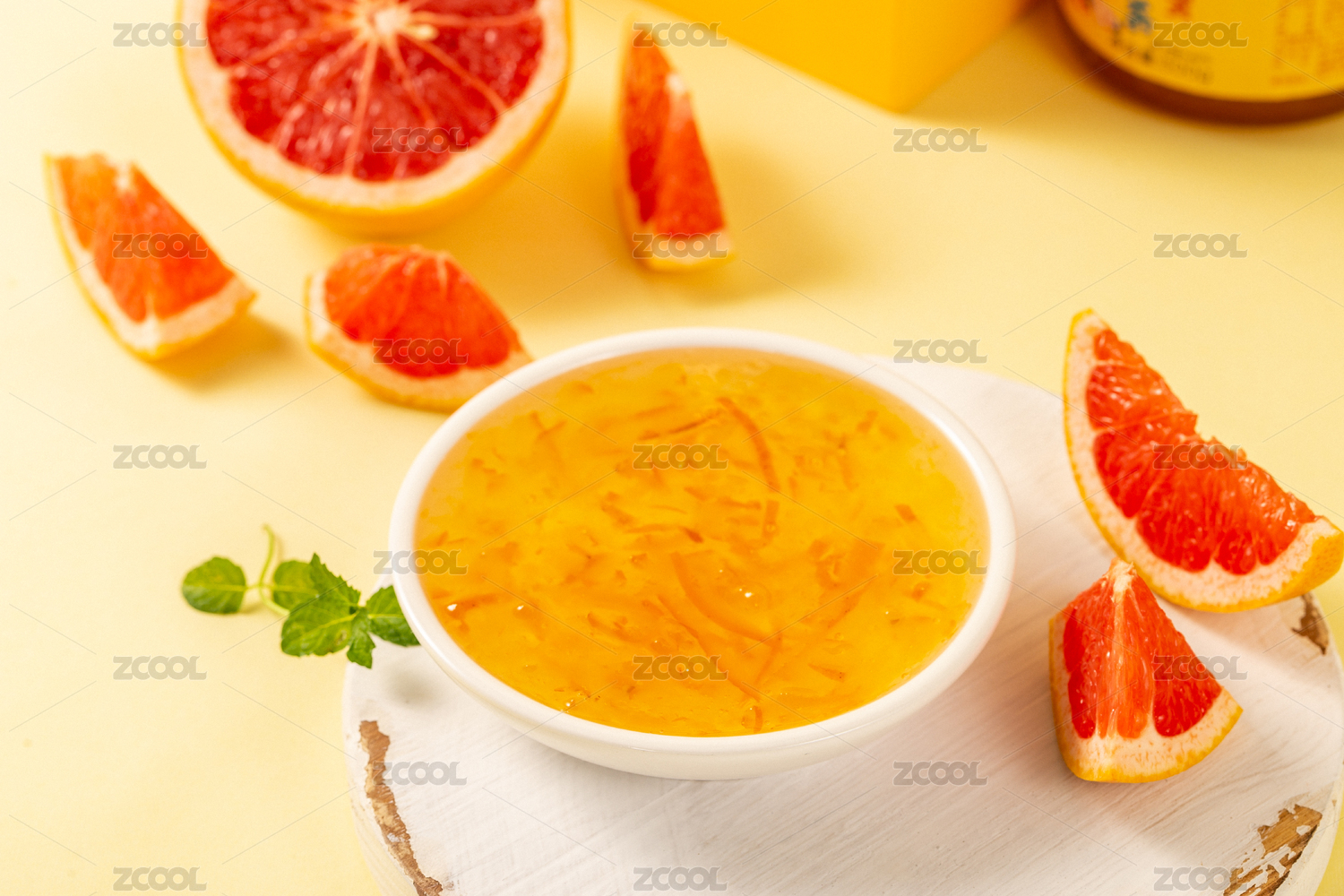 黃色背景上一碟柚子水